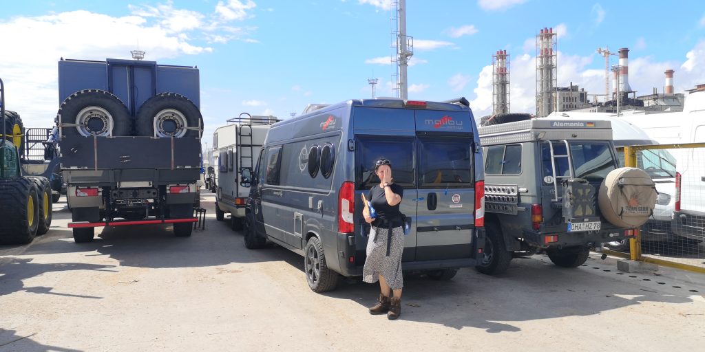 unseren Camper, ohne Schäden und das meine ich auch so. Als wir das BoL von KMA abholten (für die weiteren Schritte) trafen wir auf viele Gleichgesinnte. Dort gingen Horrorgeschichten um, wie die Fahrzeuge der letzten Überfahrten aussahen, mir wurde übel bei dem Gedanken, wie unser Auto dann aussieht. Also, es sieht aus wie immer, eben cool;-)