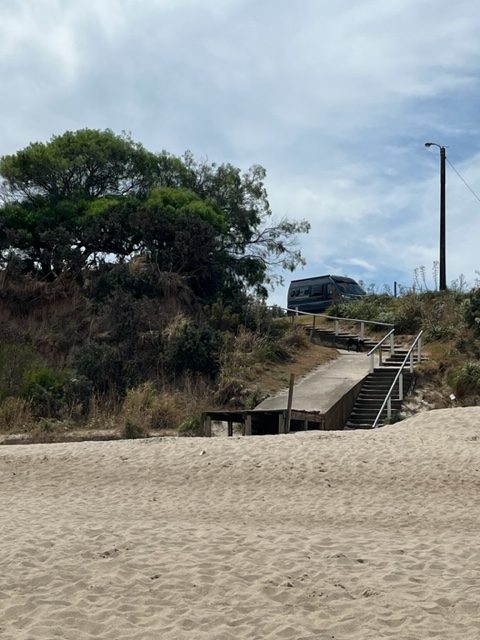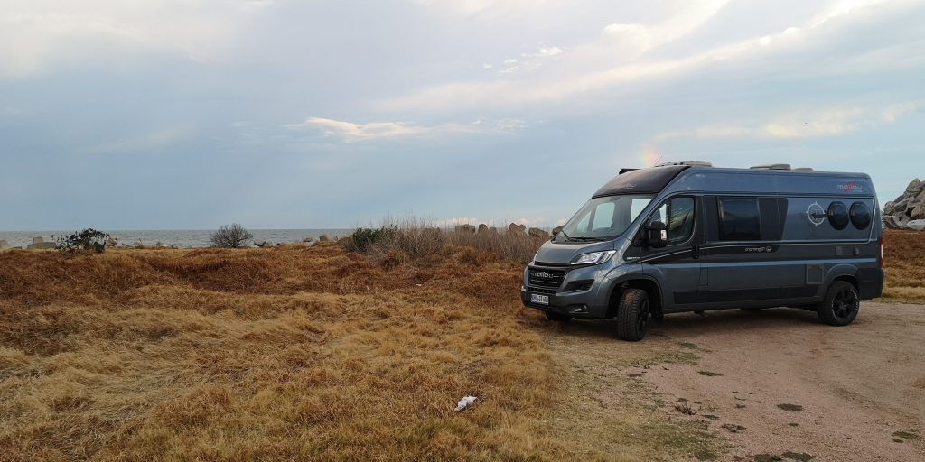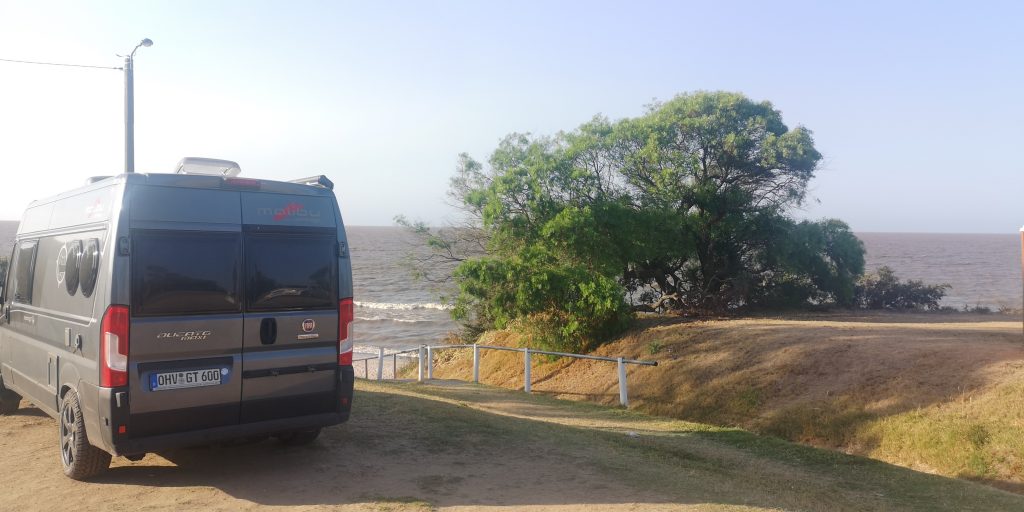 Ein Camper ohne Gas, Wasser, Diesel, Lebensmittel und total verbaut, weil ja alles gut verpackt sein musste. Wasser, Diesel und Lebensmittel waren kein Problem, aber auf einen heißen Kaffee am morgen müssen wir wohl verzichten. Nur noch raus aus Montevideo nach Punta Carretas (hatte ich mir davor schon rausgesucht), den Abend genießen und schlafen. Wir stehen natürlich, wie könnte es anders sein – cerca del mar