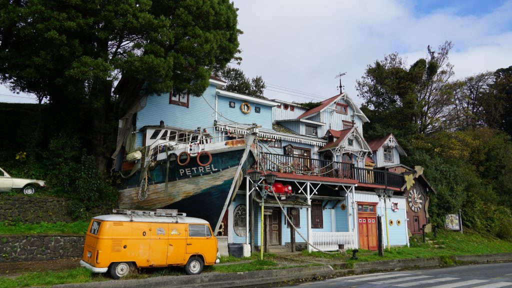 Bis Osorno hatten wir das Gefühl, durch das Allgäu zu fahren. Wieder viel Wasser und viel Grün. In Osorno hatte sich Theres noch ein Geschäft mit regionalem Kunsthandwerk heraus gesucht. Dort wollten wir noch vorbei. Aber wohin mit dem Camper? Der Reiseführer sagt Osorno hat nichts zu bieten und iOverlander sagt, Vorsicht Diebstähle!