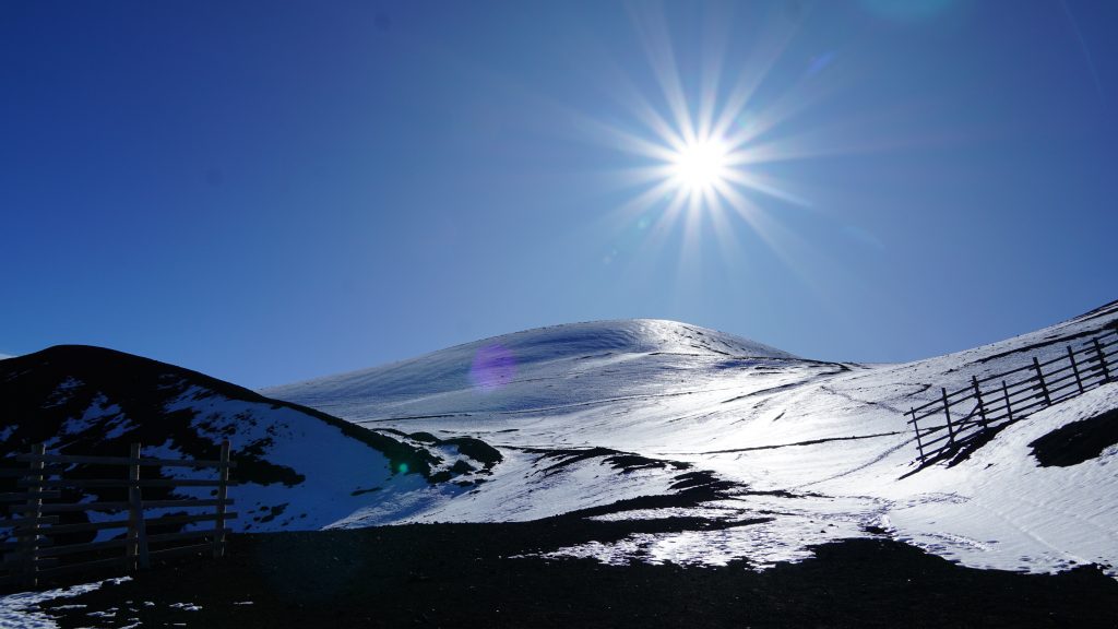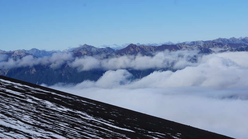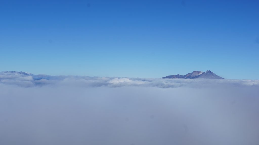 was für ein Morgen, immer noch über den Wolken und fast allein. In der Nacht hat sich noch ein LKW die Straße hoch geschleppt. Im Dunkeln sah er durch seine Beleuchtung riesig aus. Das hat sich am Morgen dann als Täuschung heraus gestellt. Aber einen kompletten Tellerlift hatte er auf seiner Ladefläche. Hier beginnt bald die Skisaison.