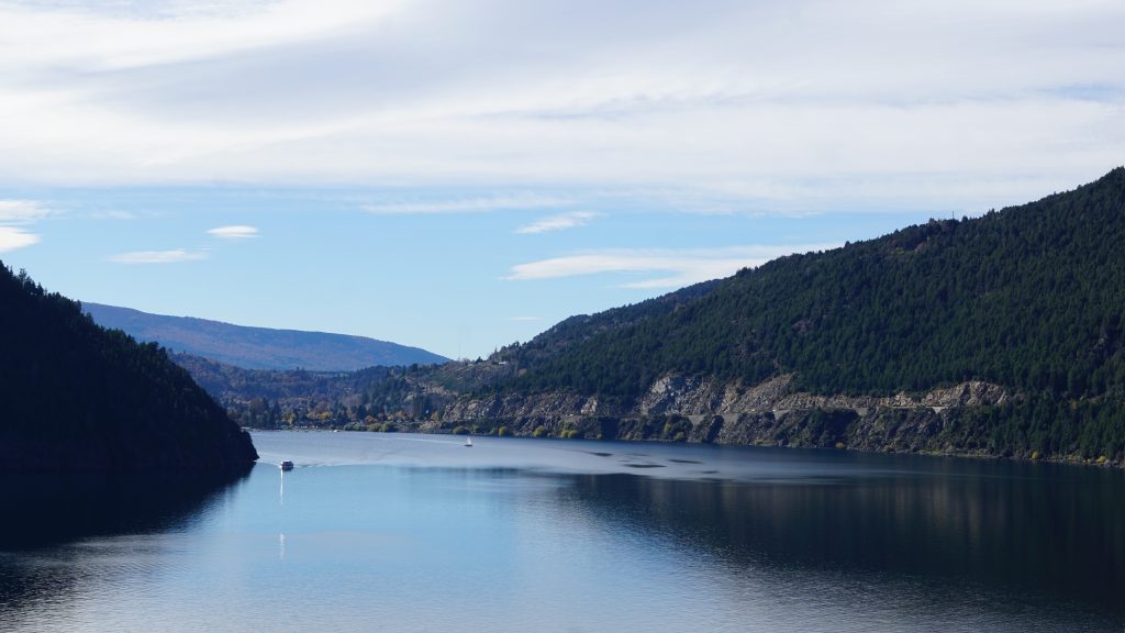 Obwohl die Bezeichnung Umweg etwas unfair ist, denn am Lago Nahuel Huapi mit seinem klaren Wasser, den vielen Inseln und den Anden im Hintergrund entlang zu fahren war schon ein Traum. Leider war die Sicht nicht ganz so schön wie gestern. Also gestern eigentlich alles richtig gemacht.
