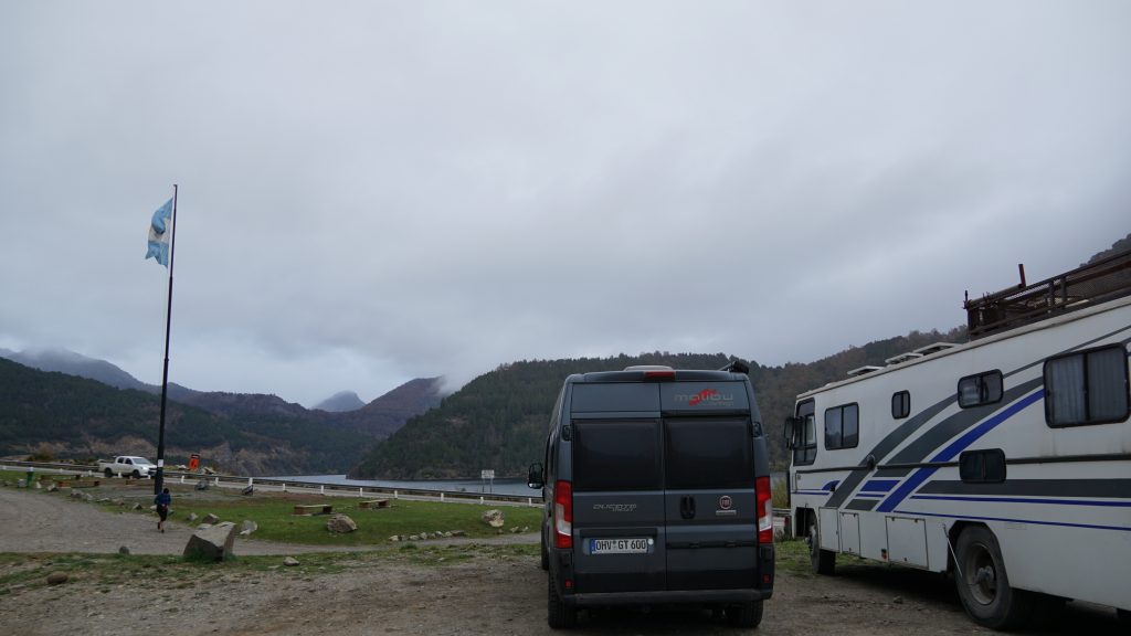 Aber wir haben auch einen schönen Übernachtungsplatz gefunden. Er liegt zwar direkt an der Ruta 40 aber mit einem tollen Blick auf den Lago Làcar und mit netten Nachbarn.