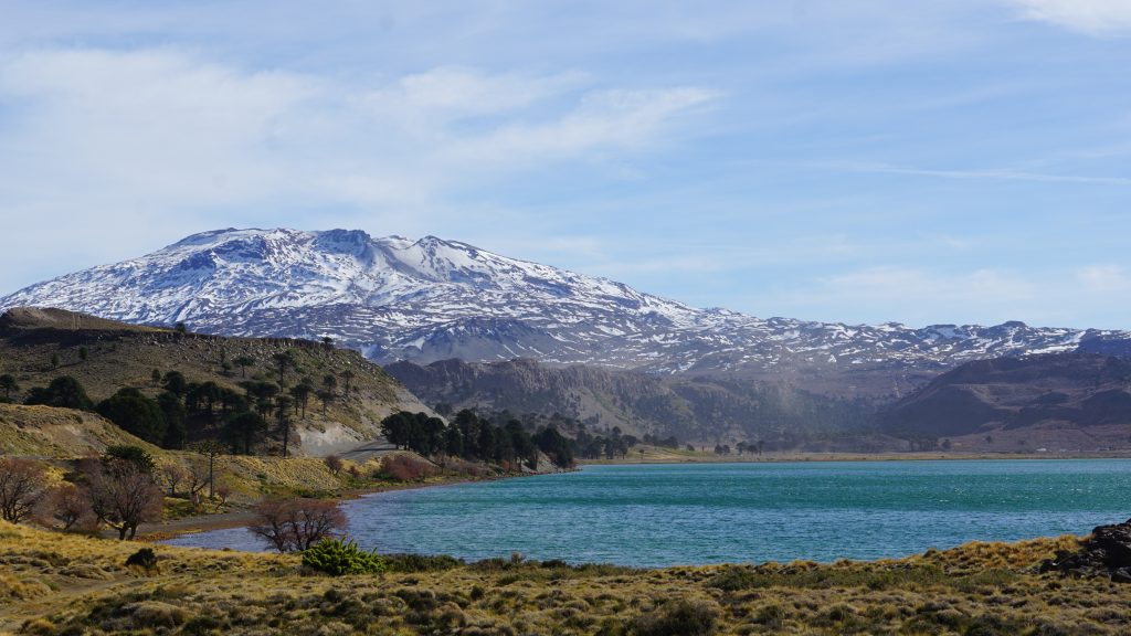 Lange sind wir heute wieder nicht gefahren. Obwohl, lange schon, aber nicht weit. Es mussten wieder zu viele Fotostopps eingelegt werden. Der Umweg hat sich gelohnt! Ein türkisblauer Lago Caviahue auf 1600m umrahmt von Aukarienbäumen, die von weitem aussahen wie Palmen, und am Horizont die schneebedeckten Anden.