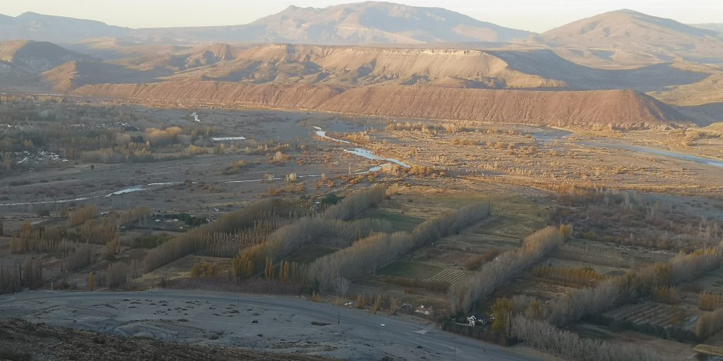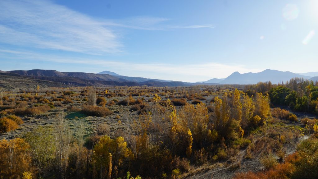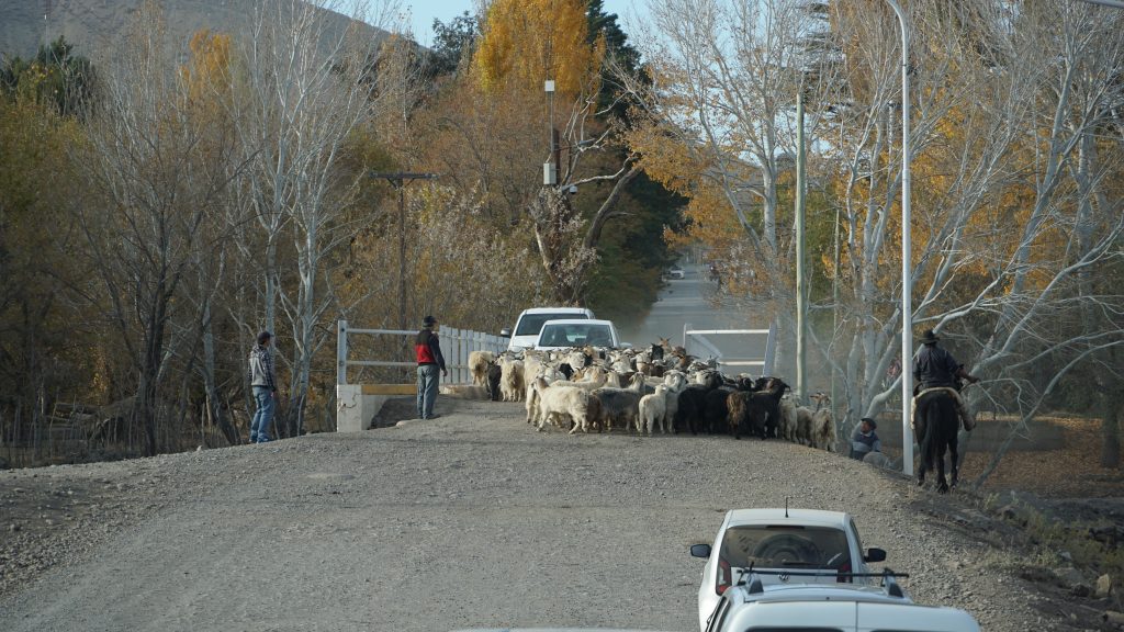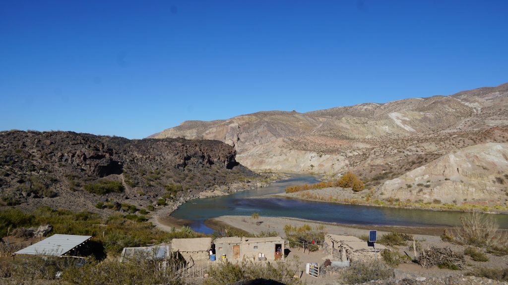 Chos Malal ist ein absoluter Wüstenort (wir befinden uns jetzt in der Buschsteppe) und wie eine Oase. Gespeist durch den Rio Neuquen ist er sehr grün, aber sobald man den Ort verlässt, wird alles wieder trocken und staubig.