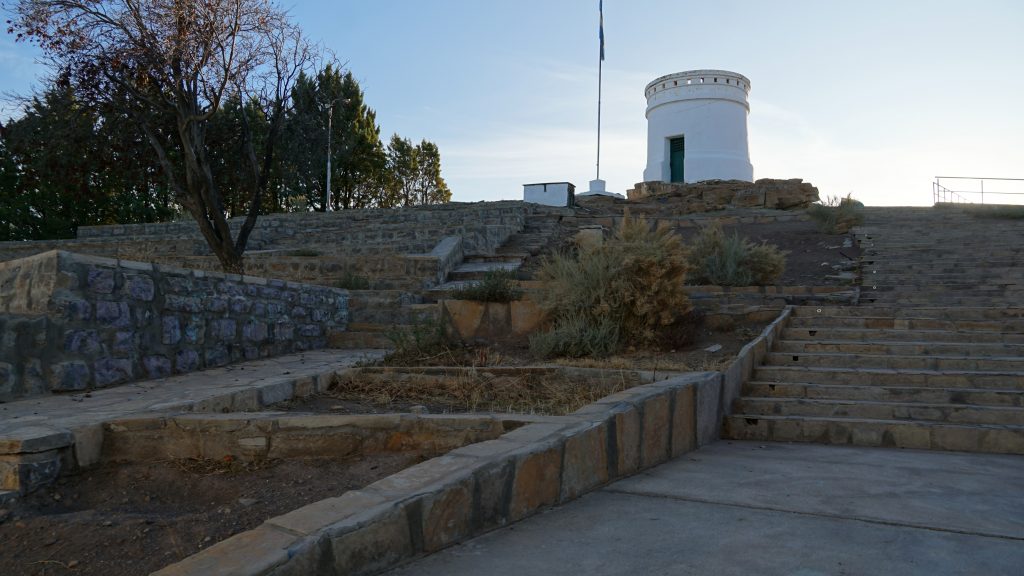 Von unserem Stellplatz in Chos Malal hatte man einen Blick, natürlich auf viele Berge, aber auch auf einen, der die ganze Nacht beleuchtet war. Sogar der Weg hinauf war die ganze Nacht zu sehen. Da musste ich hinauf, ich wollte es wissen. Also früh am Morgen dort hingefahren, Theres blieb im Camper und ich bin schnell noch da hoch. Nach nur 250 HM wusste ich, dass es sich um einen Aussichtspunkt über die Stadt und gleichzeitig eine Marienverehrung handelt. Hier hatte ich auch das erste Mal das Gefühl des frühsommerlichen Erwachens einer Großstadt. Bezogen auf den Geräuschpegel sowie die morgendliche Frische, bevor die Wärme sich ausbreitet.