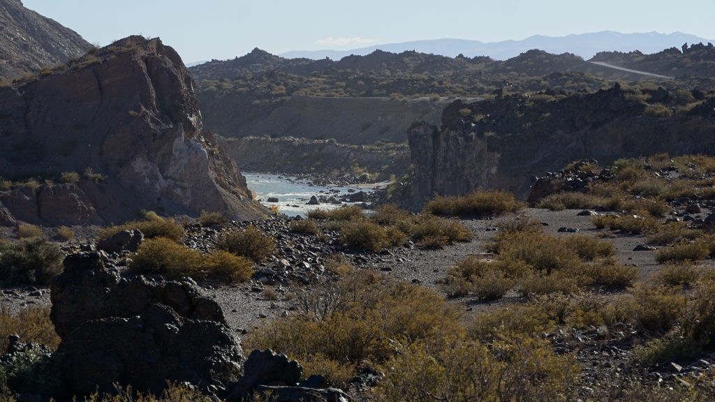 Es ging heute weiter natürlich auf der Ruta 40. Wieder mussten wir häufig anhalten, viele tolle Blicke, in Canyons, durch den der Rio Grande fließt, auf verschneite Anden und in fruchtbare Täler. Wir sind durch Lavafelder gefahren und man hatte das Gefühl, als sei der Ausbruch noch nicht lange her. Ein Canyon, der aus Lavagestein besteht, durch den sich der Rio Grand schlängelt.
