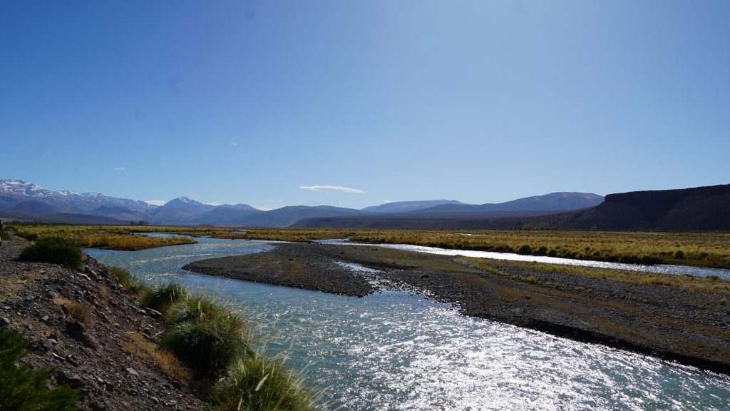 Wir hatten noch Fleisch im Kühlschrank und Grillkohle im Sitzkasten und es waren noch 32°C und es kam der Rio Grande mit einem tollen Plätzchen abseits der Ruta 40. Wir sind um 16:00 stehen geblieben und haben diesen tollen Platz genossen. Er ist übrigens an einem ca. 50 km langem Stück Schotterpiste auf der Ruta 40.