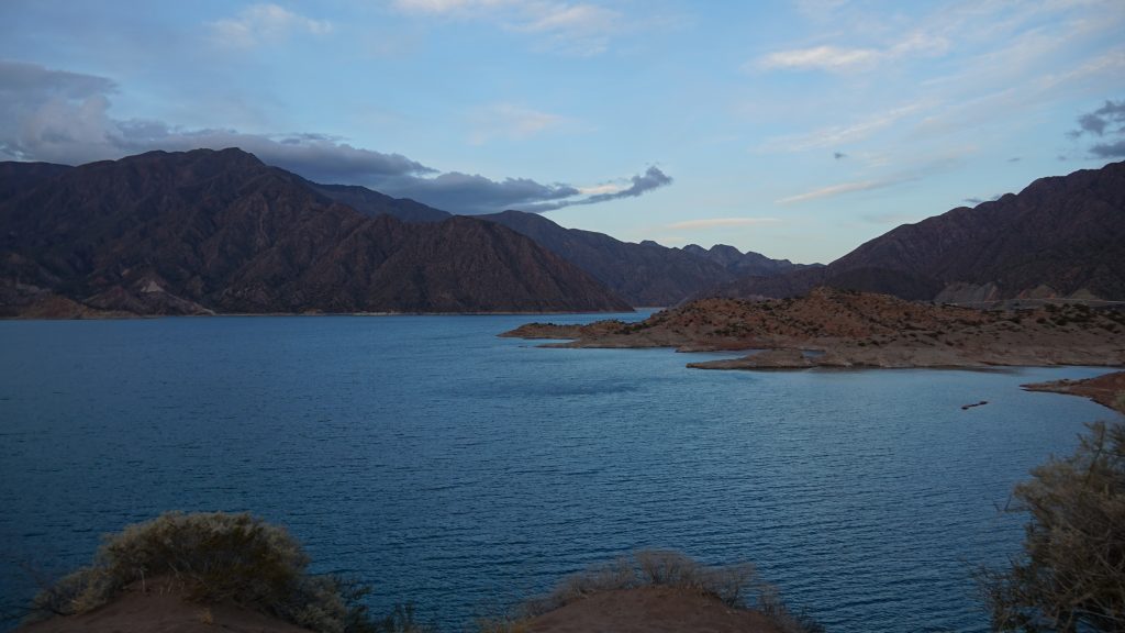 Dann, nach nur 70 km strahlte uns der Potrerillostausee (1400 HM) mit seiner blauen Farbe an. Wir sind hier einfach stehen geblieben, haben die Stühle ausgepackt und uns in die Sonne gelegt. Baden waren wir noch nicht, aber vielleicht bietet sich das morgen früh noch an.