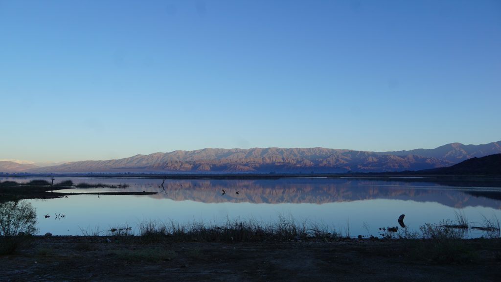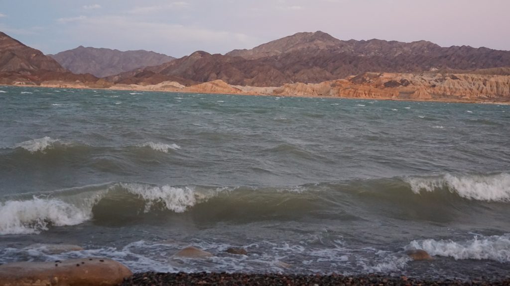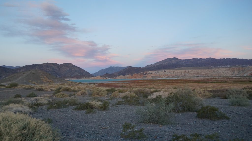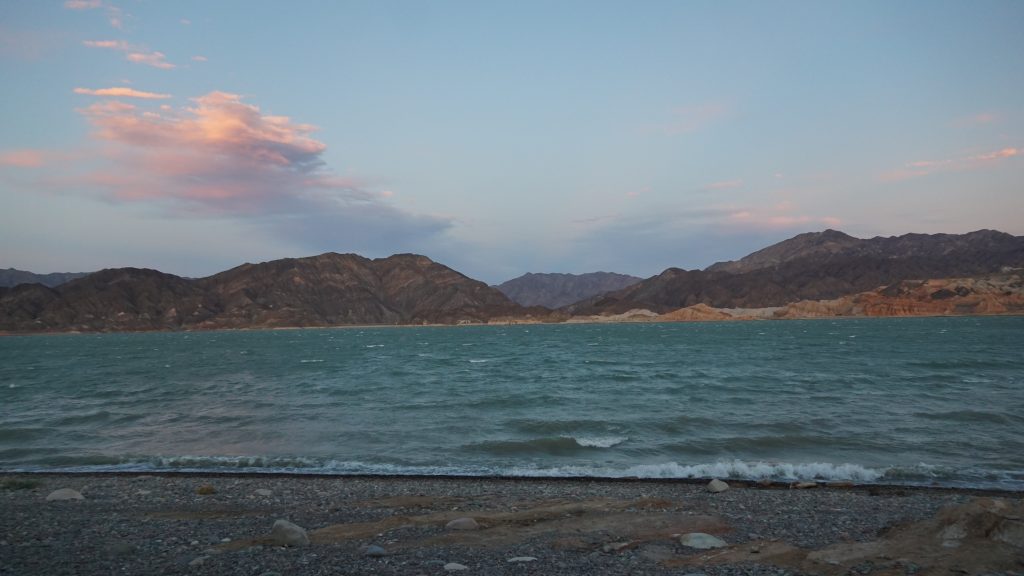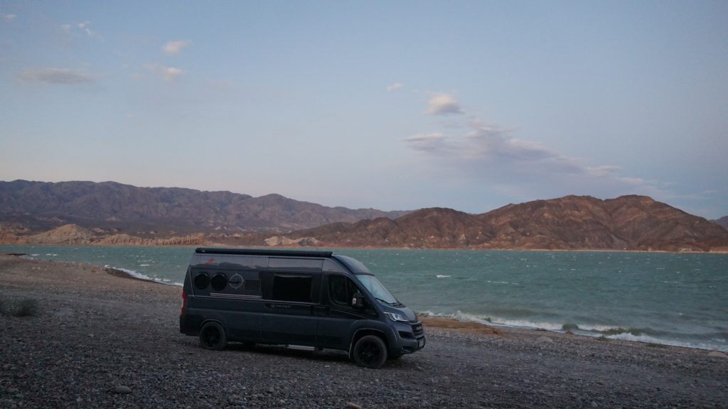 Wir stehen wieder an einem See, dieses mal etwas kleiner und nicht so spät. Zum baden lädt er durch seinen lehmigen Untergrund nicht ein, aber die Aussicht ist wieder top.