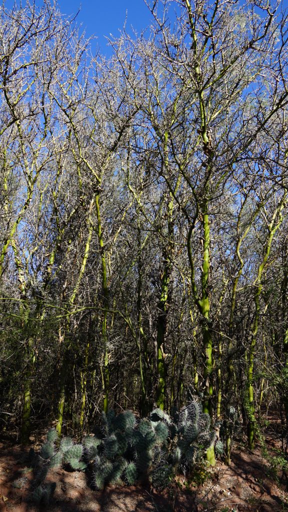Es tat gut, mal wieder zu laufen, es war keine Herausforderung, aber darum ging es ja auch nicht. Der erste Trail ging durch einen Kakteengarten. Aber das wäre zu vereinfacht ausgedrückt. Gleichzeitig ging es an roten Felsen, weißen Salinen und durch…, eben Sandwüste. Theres war zufrieden, dass sie doch ihre Stiefel angezogen hat.