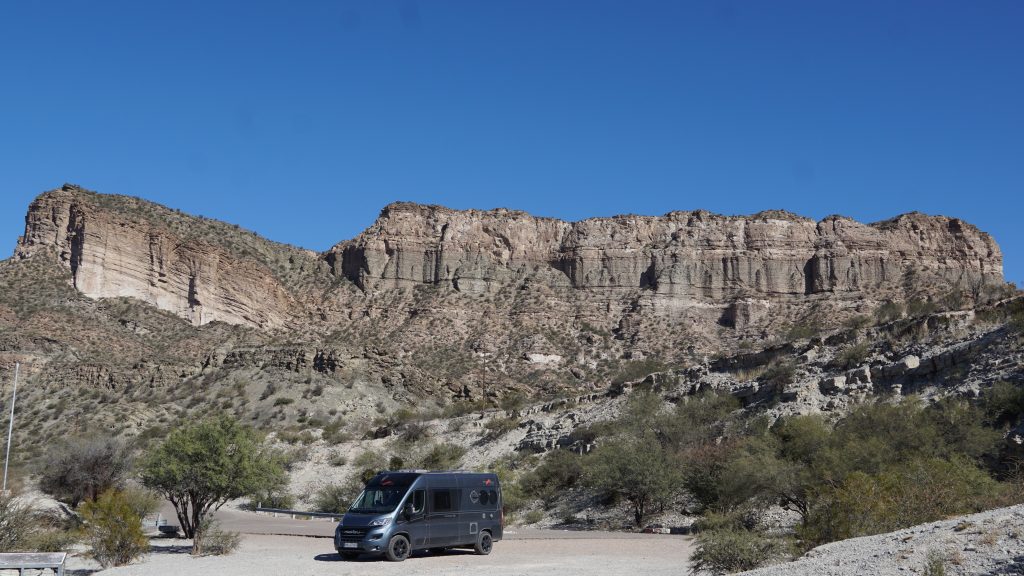 es war wieder eine typische stille Wüstennacht. Das einzige, was zu hören war, war wieder einmal unser Kühlschrank und Nachbars Heizung. Den tollen Sternenhimmel haben wir uns aus dem Camper angeschaut. Es war uns zu kalt draußen.