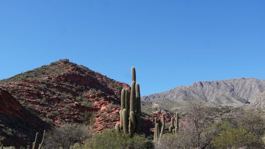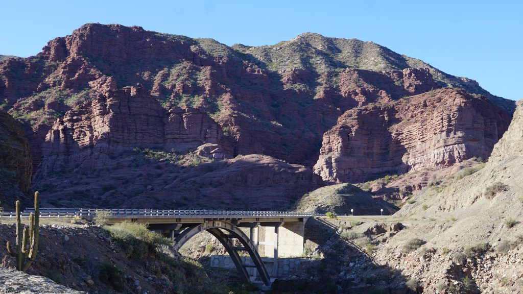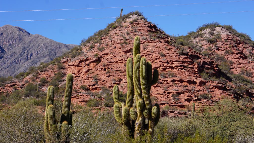 Weiter ging es durch das Cuesta de Miranda nach Chilecito. Rote Felsen, eingebettet in ein sattes grün mit vielen Kakteen und natürlich sehr kurvenreich.