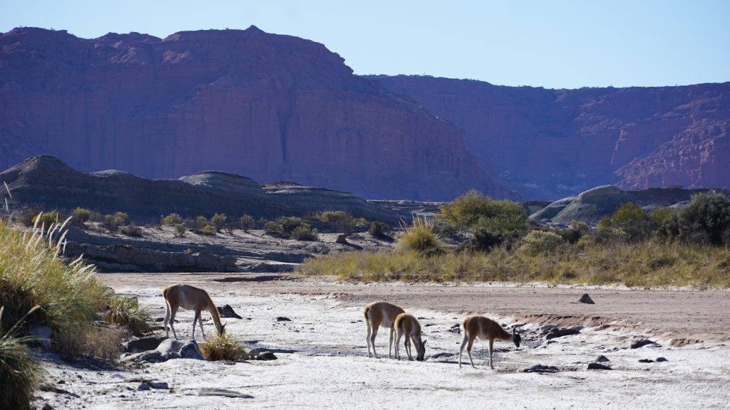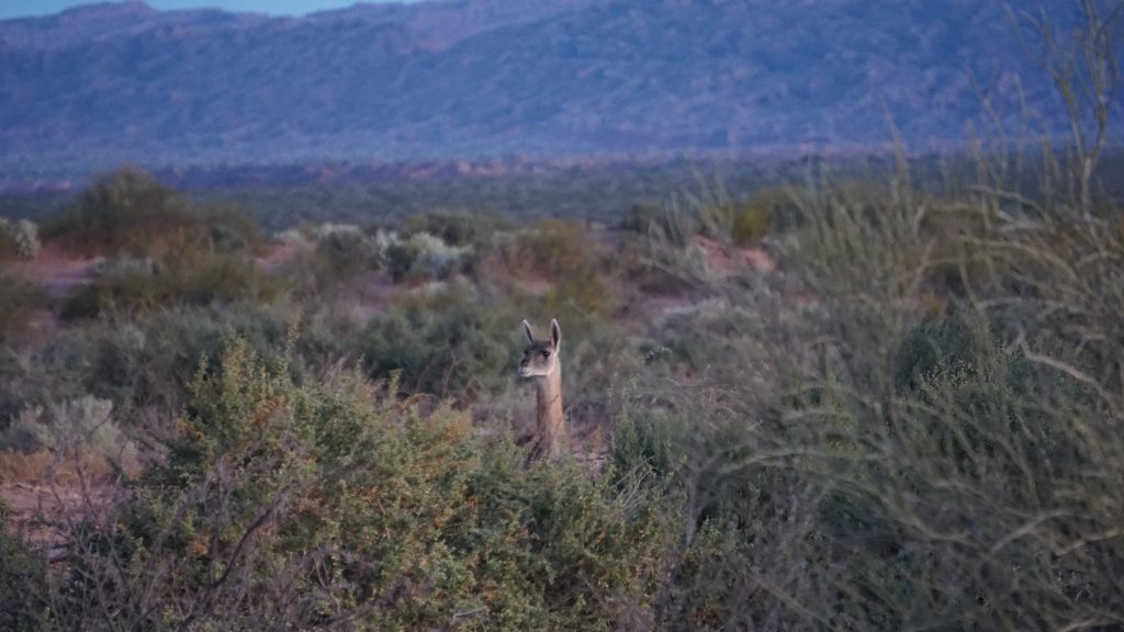 Aber den Stellplatz vom Park nutzen wir. Dieser ist sehr schön gelegen, natürlich in der Wüste mit staubiger roter Erde. Guanacos und Chuna (Hasenähnlich) laufen direkt an unserer Campertür vorbei. Und der Blick in die Weite!!! Leider vergessen wir immer wieder gerne, sobald die Sonne hinter dem Horizont verschwunden ist, wird es richtig kalt!!!