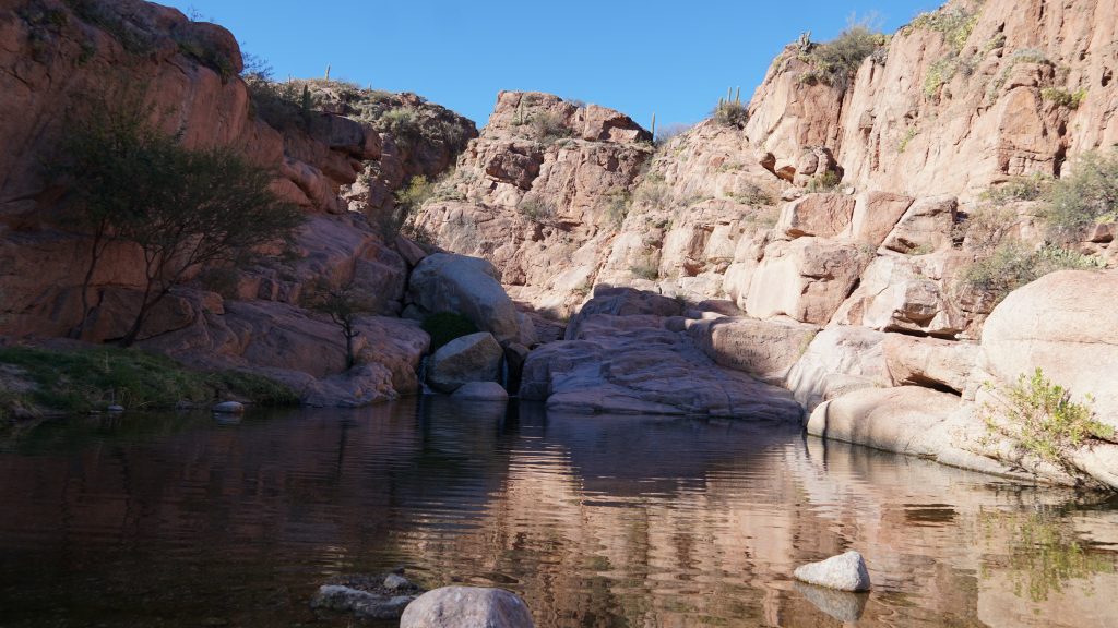 Es handelt sich um einen kleinen Canyon mit einem Wasserbecken. Damit man es regional vermarkten kann, muss auch eine kleine Ausgrabung dabei sein. Uns hat es gefallen und war gleichzeitig der ideale Frühstücksort.