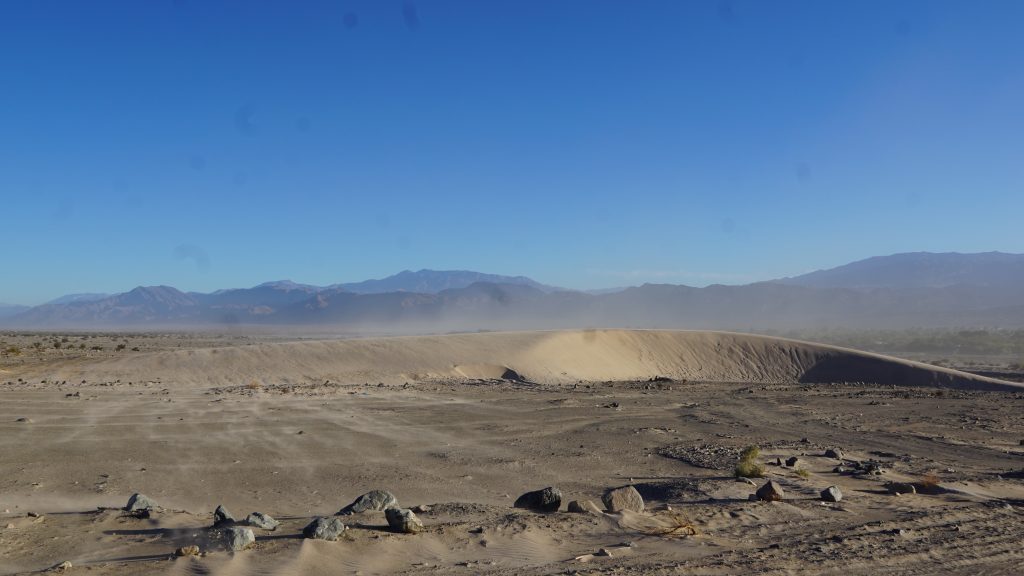 Bis Tinogasta war die Strecke an den Anden noch sehr abwechslungsreich und grün. Das endete danach abrupt. Kein grün, einfach nur Sand und Wind.