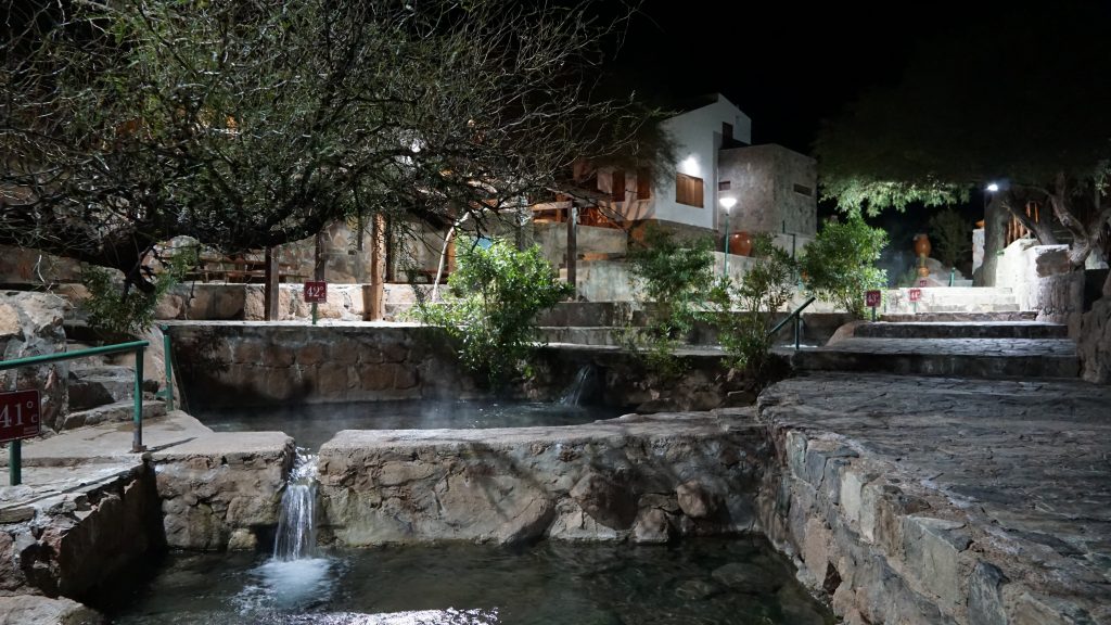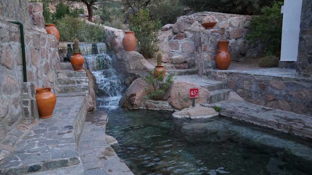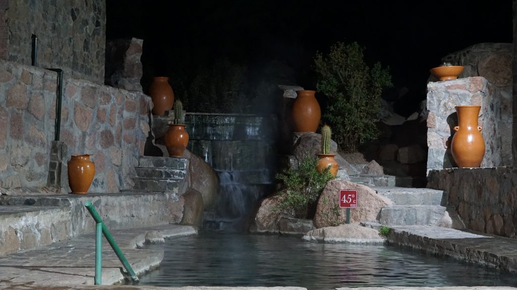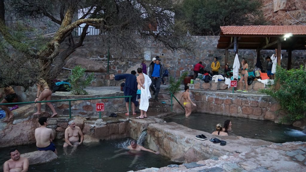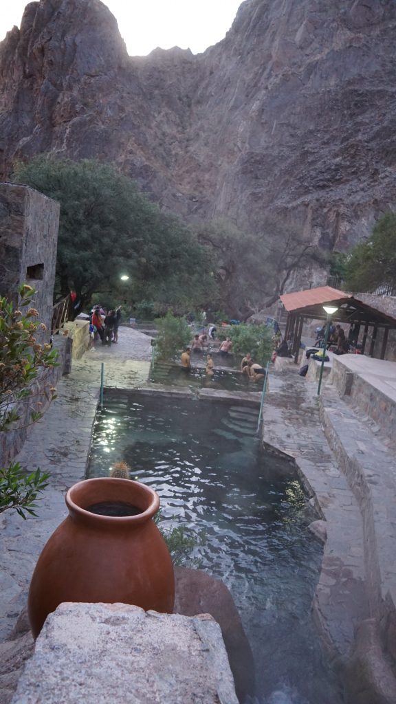 Gestern Abend fast alleine in 15 Naturbecken zwischen 30° und 45°. Umrahmt von Bergen auf ca. 2000 m und über uns die Sterne. Heute am Sonnabend war es das Ausflugsziel von vielen Familien, so dass das Bad wirklich gerammelt voll war. Es war trotzdem eine entspannte Atmosphäre. Die Sonne schien, wir lagen im warmen Wasser und konnten fünf Condore über den Gipfeln beobachten. Entspannung pur!