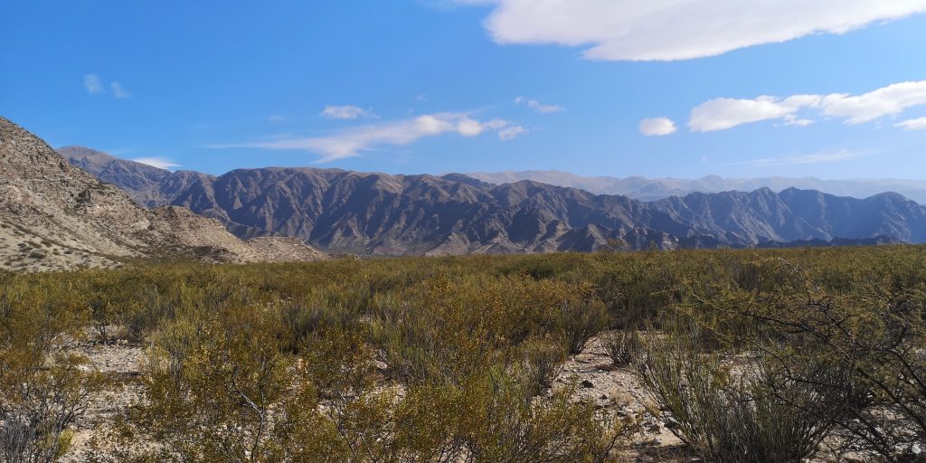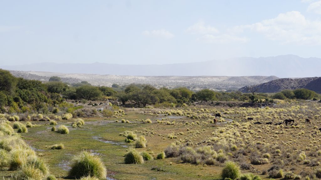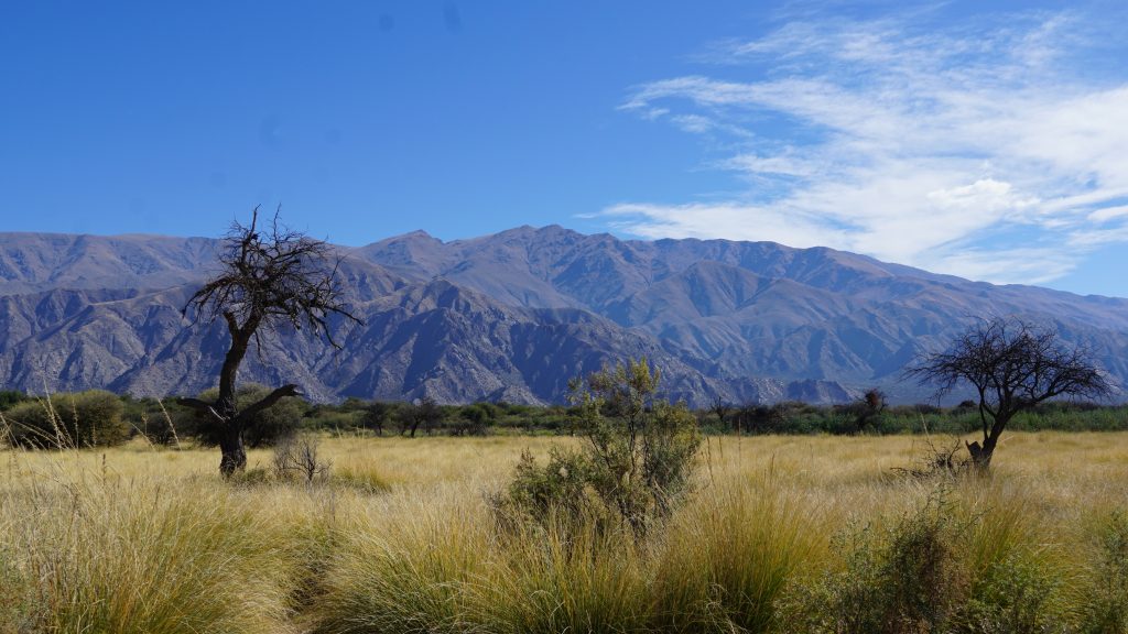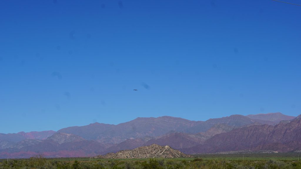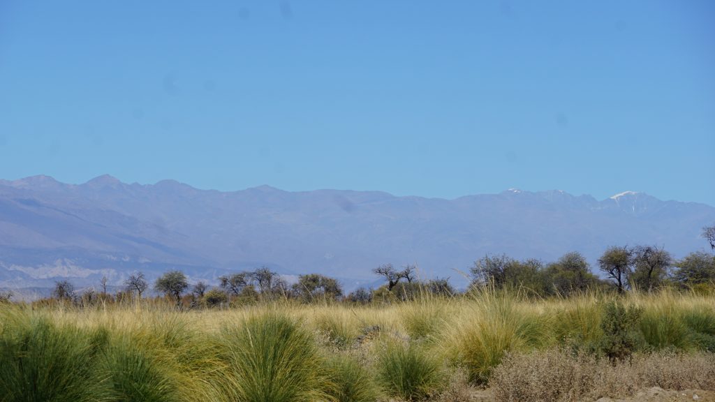 Die Ruta 40 schlängelt sich hier westlich des Tals an den Anden entlang. So ging der Blick immer links nach oben und rechts in die Weite auf Grasland.