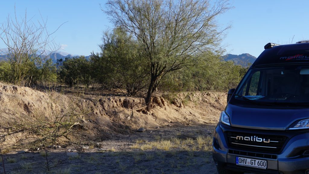 Ein Stellplatz war, dank iOverlander, schnell an einer anderen Plaza gefunden.