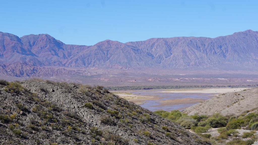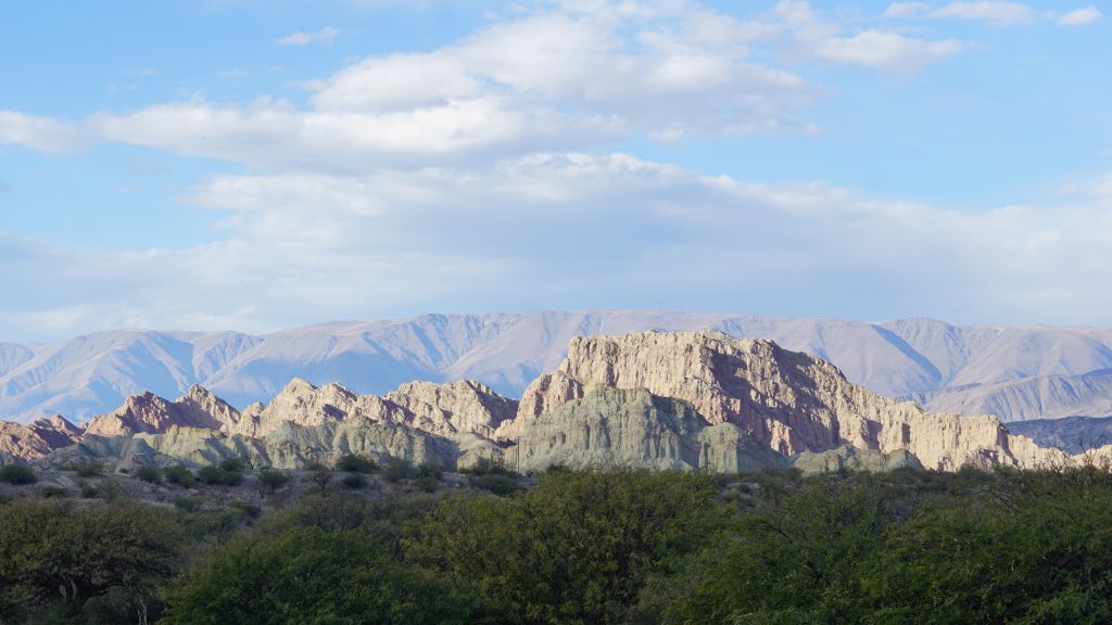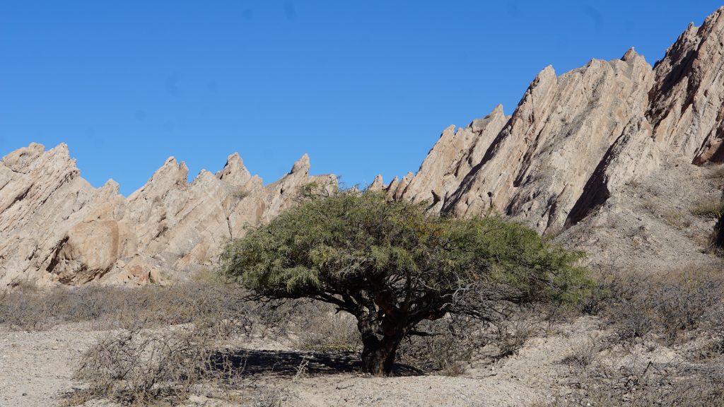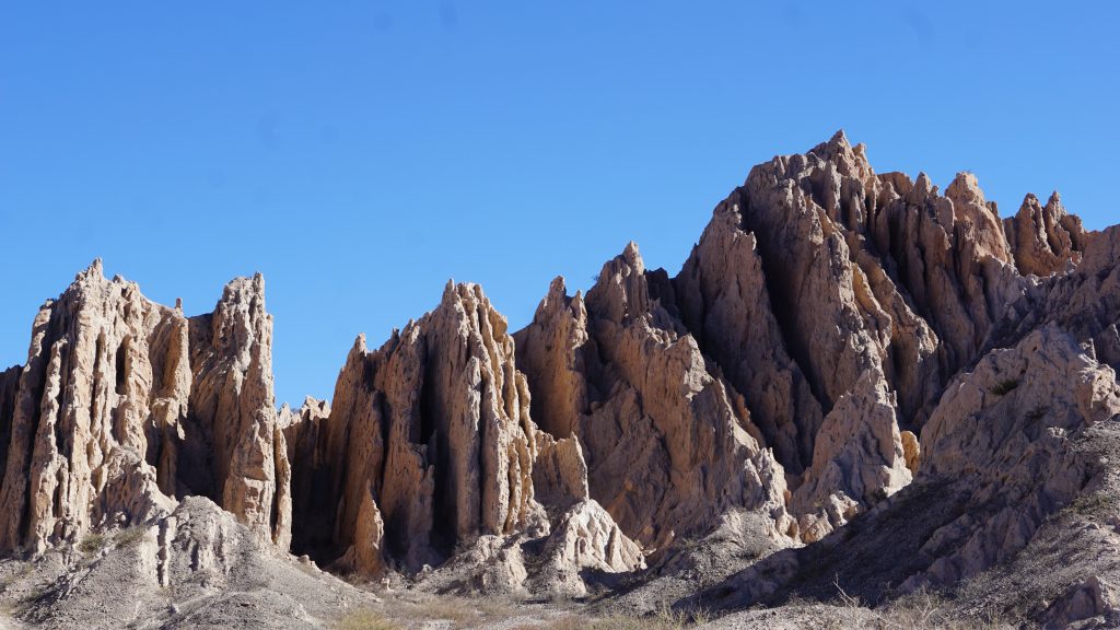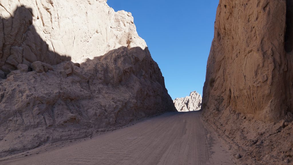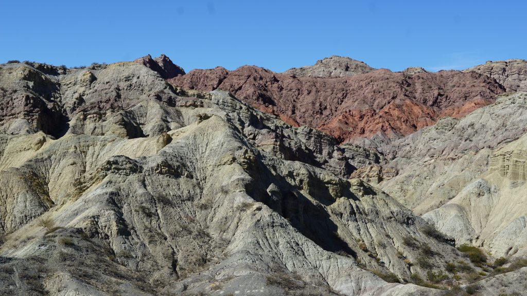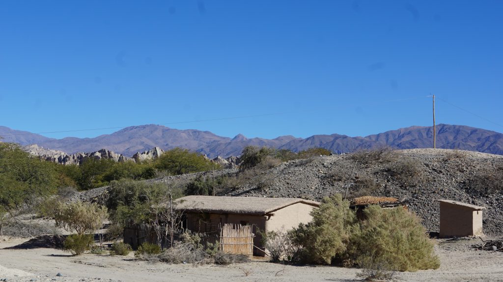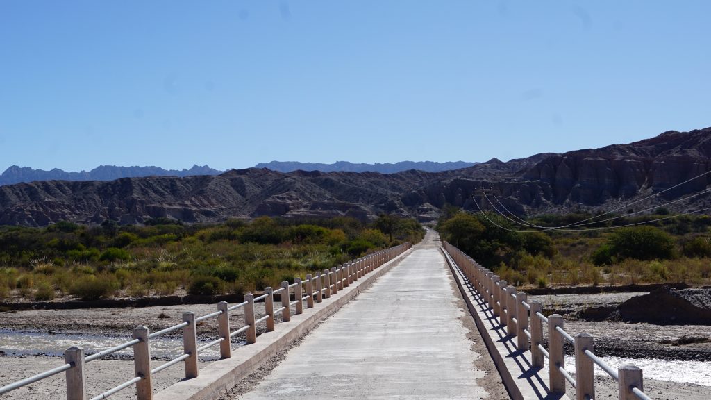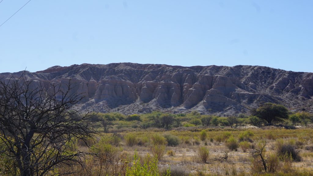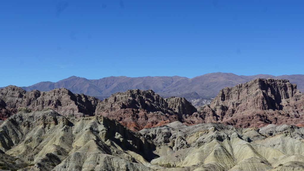 Celso und Carla haben uns ein Video über die Ruta 68 nach Salta gezeigt und sofort kamen Zweifel auf, ob diese Strecke nicht schöner ist. Wir sind bei unserer Entscheidung geblieben und bereuen es nicht. Es ist der absolute Wahnsinn. Wir kommen nicht weiter. Immer wieder müssen wir anhalten, um zu fotografieren oder die Umgebung einfach nur zu inhalieren. Immer wieder ändernde Berg- und Farbformationen. Scharfe Spitzen, dazwischen tiefe Spalten und das meiste aus Lehm. Staub ohne Ende, aber dann ein Fluss, der die Straße kreuzt und viel Grün ins Bild bringt. Es ist unbeschreiblich. Was wir unserem Camper damit antun, darüber möchten wir lieber nicht nachdenken. Die Straße (Schotterpiste) ist in einem wirklich schlechten Zustand und der Staub und die trockene Luft geben den Rest dazu.