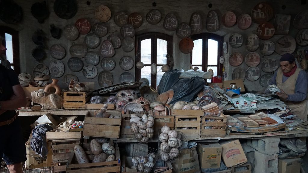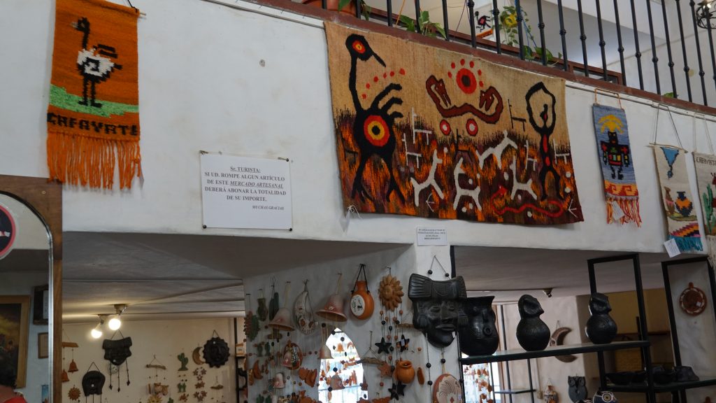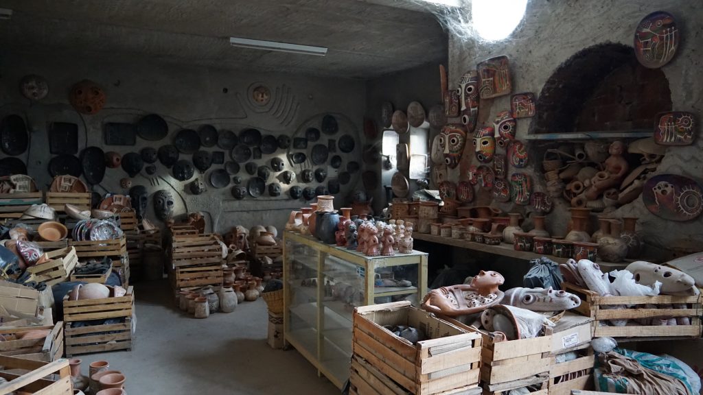 Natürlich gibt es hier ebenfalls Artesanales, die Theres magisch anziehen. Es war zu spät, wir konnten nicht mehr umkehren. Bevor man sich das Kunsthandwerk anschaut, muss man durch ein archäologisches Museum.