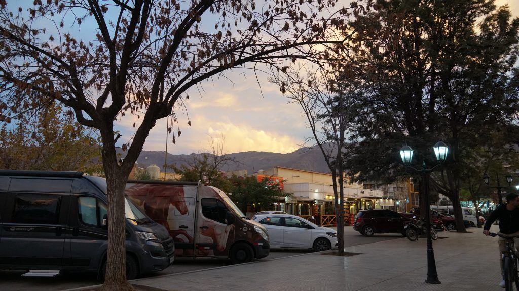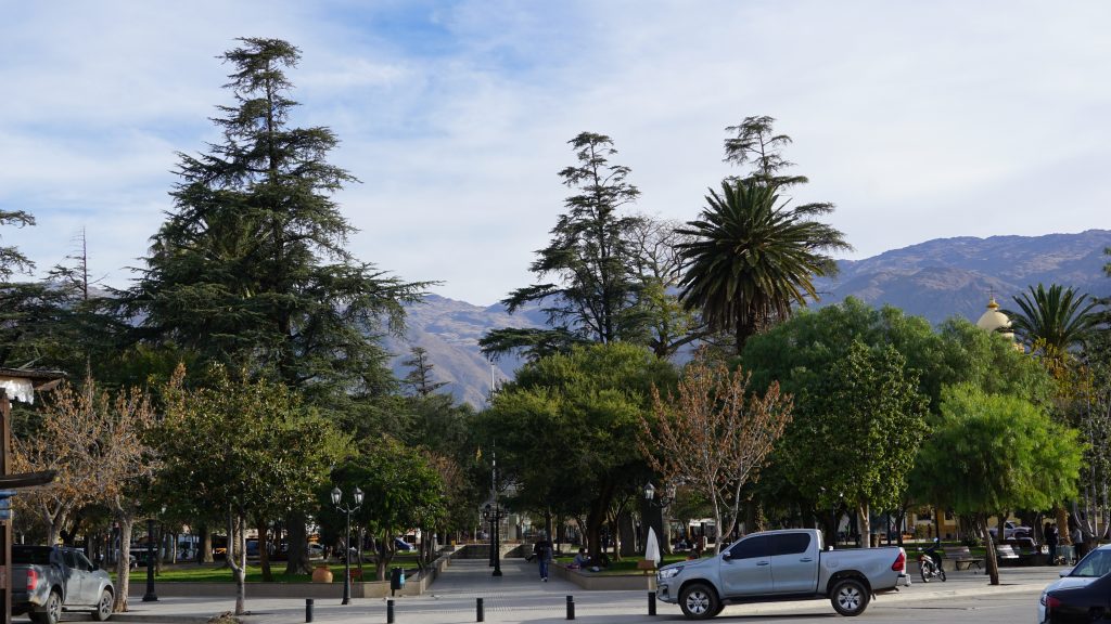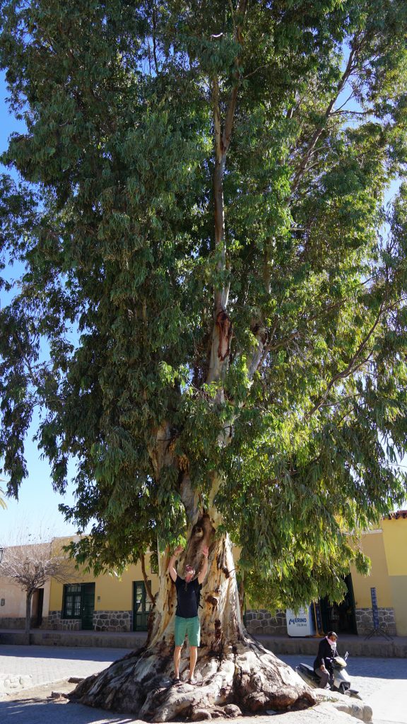 Vielleicht hätten wir unsere 3 Tage Pause besser hier machen sollen. Aber das weiß man davor ja nie. Cafayate ist eine Weingegend und wesentlich mehr durch den Tourismus geprägt. Nicht, dass wir das so unbedingt benötigen, aber es ist grüner, sauberer und nicht so staubig. Es gibt eine schöne Plaza, die nicht nur Schatten spendet, sondern die auch die Sonnenstrahlen durchlässt. Gut, im südamerikanischen Sommer möchte ich hier nicht sitzen, bei 25°C können wir es aber sehr gut aushalten und genießen.