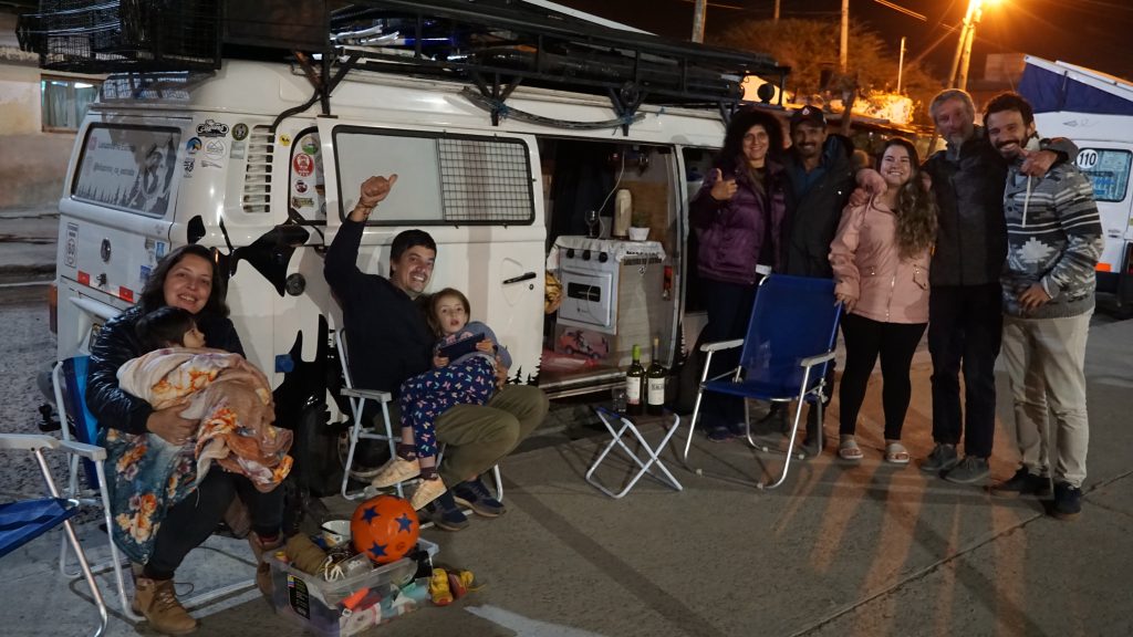An der Plaza wollten wir eigentlich nicht übernachten, doch Theres hat es genossen, durch die Märkte zu schlendern, ich saß vor dem Camper. Wie das dann so ist, stand noch ein brasilianischer Camper neben uns. Man unterhält sich ein bisschen auf span-/englisch, ich hole dann unseren Übersetzer dazu, dann ging es schon besser vom Portugiesischen ins Deutsche. Noch ein Gläschen Rotwein und wir konnten nicht mehr weiter fahren.