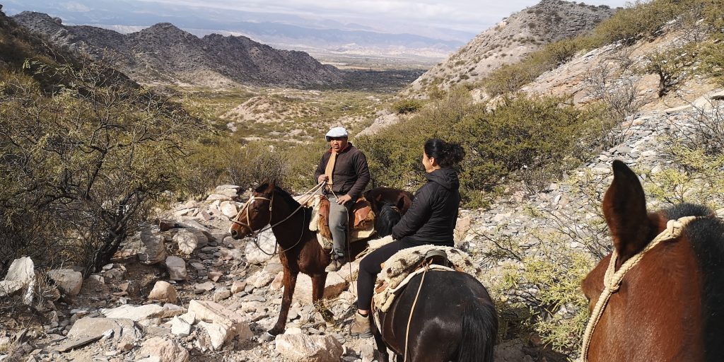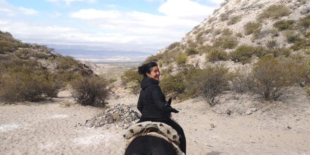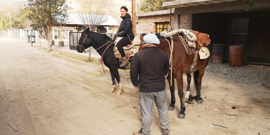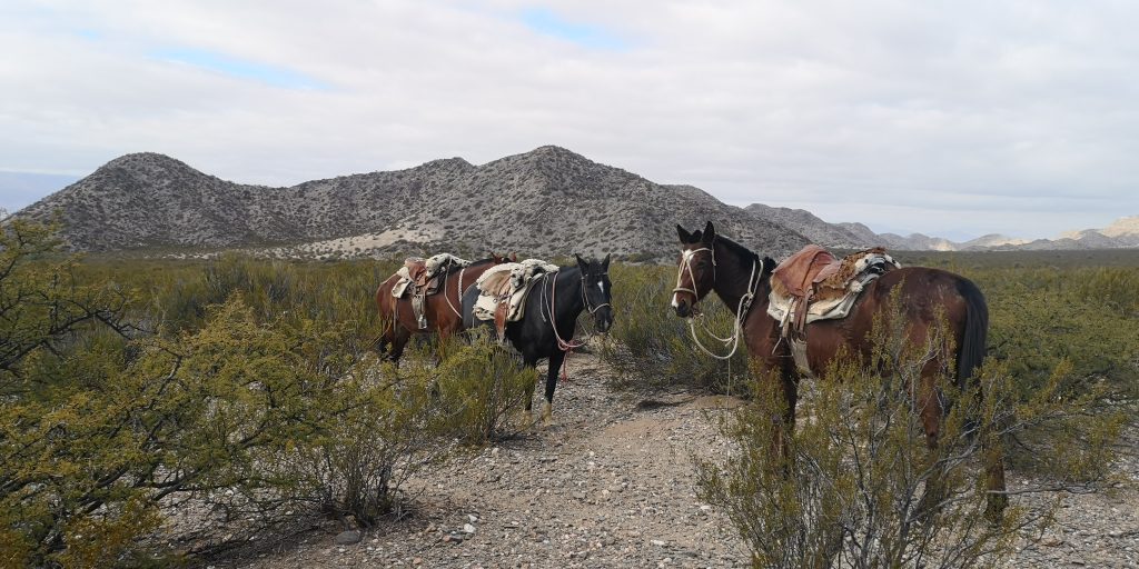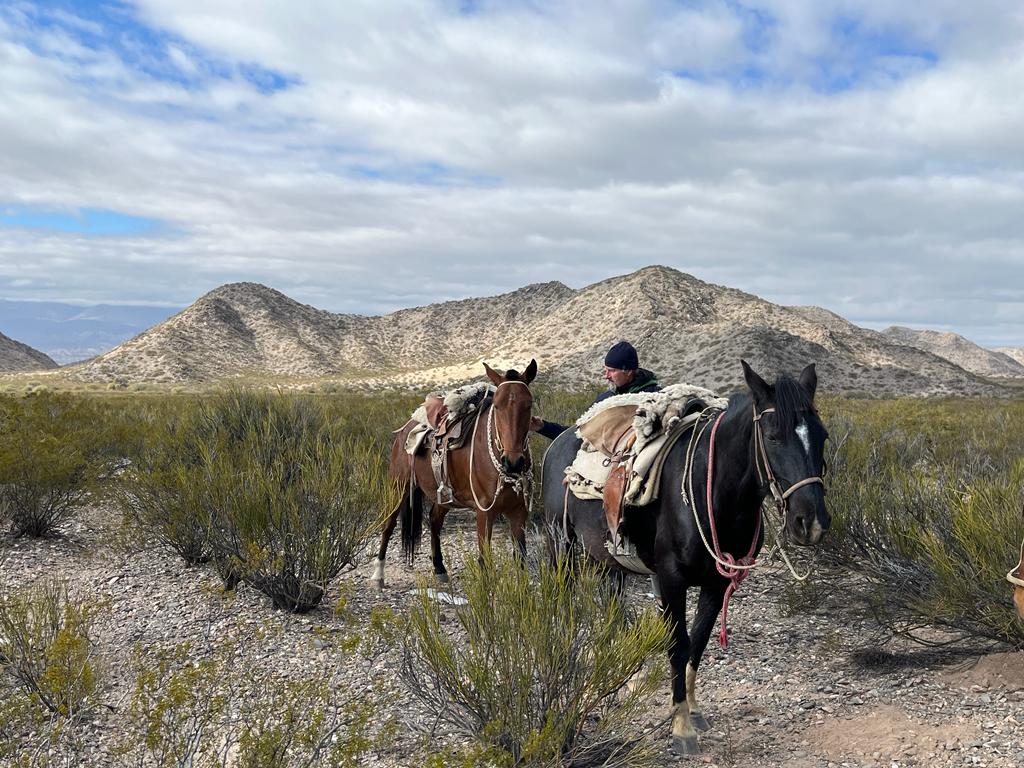 Wir waren heute zwei Stunden zu Pferde unterwegs. Nicht an der Lounge, sondern mit William (unserem Guide) quer Feld ein und jeder auf sich gestellt. Auf einem schmalen Pfad aus Schotter ging es bergauf durch Gestrüpp bis zu einer Hochebene. Dort nur noch flache Büsche mit Adlernestern und Sandboden. In der Ferne die Anden mit ihren vielen Farben. Eigentlich wieder einmal ein Ort der Stille. Aber die Südamerikaner können das wohl nicht ertragen und so lief bei William permanent Musik.