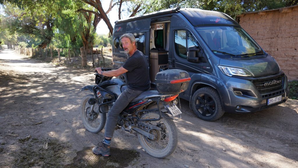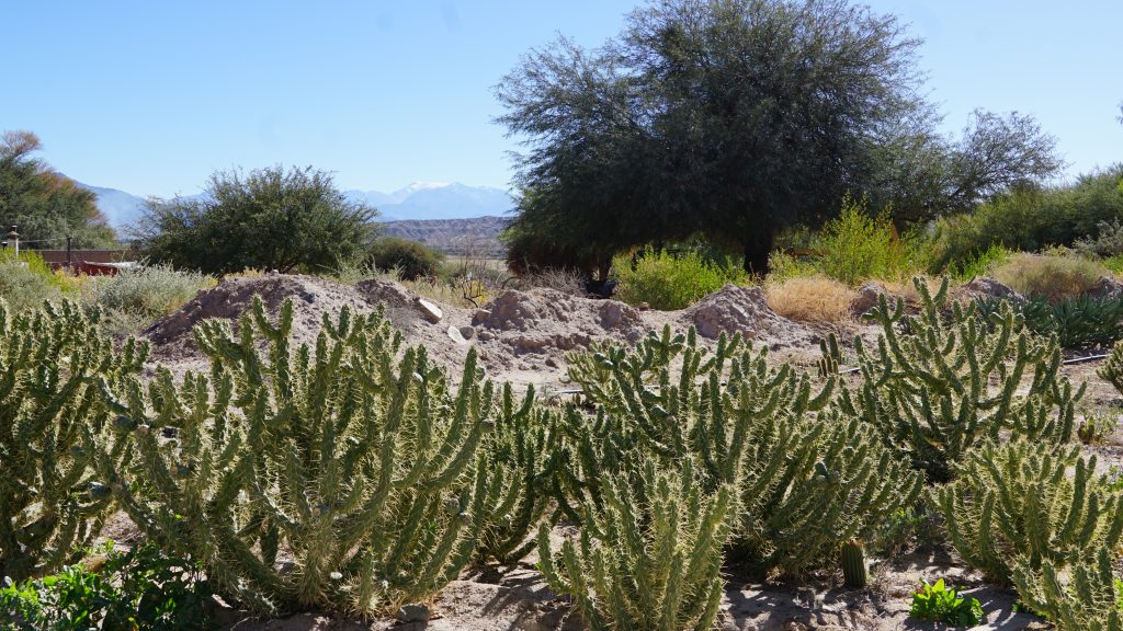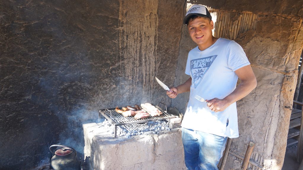 Frederic ist Farmer und zeigte uns ganz stolz seine Anbaugebiete mit Tomaten, Zwiebeln und Mais. In Argentinien ist es einfacher ein Haus zu bauen. Wenn du ein Grundstück hast, dann kannst du auf diesem machen, was du willst. So ist Frederic gerade dabei, Lehmziegel herzustellen, aus dem das Haus gebaut wird. Mit Lehm (Adobe) zu bauen ist hier typisch und funktioniert sehr gut. Die ganze Region besteht hier aus Lehm und regnen tut es maximal 15 Tage im Jahr. Heute war zum Beispiel eine Luftfeuchtigkeit von 12% angesagt. Es war ein interessanter Austausch und wir haben sehr viel über Land und Leute erfahren. Wir kennen jetzt das Schulsystem etwas besser, denn Paula ist Lehrerin. Ausserdem können wir Mate jetzt professionell zubereiten und probierten unsere ersten Cocablätter. Es war ein toller Tag.