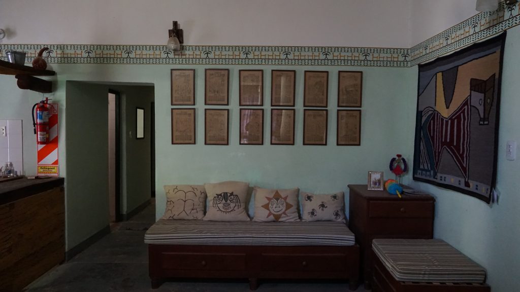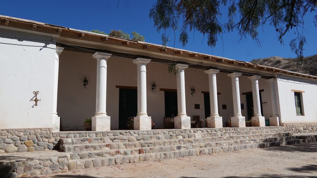 Einen Kilometer außerhalb gibt es eine Vicuna-Farm (kleinere Guanacos), hier sollten auch Produkte aus der Wolle der Vicunas angeboten werden. Theres hatte sich schon die ganze Zeit darauf gefreut. Gut, das war ein Reinfall. Aber der Ort selbst strahlt, mit seinen Bauten aus der Kolonialzeit, eine Ruhe aus, dass wir nicht einfach weiter konnten. Wir genossen unseren Kaffee auf dieser ehemaligen Estancia wie echte Estancieros auf der Hazienda, umgeben von uralten Bäumen.
