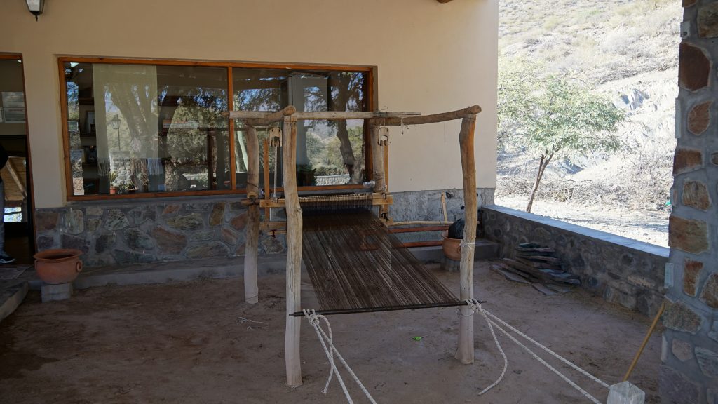 Heute ging es an der Camino de los Artesanos entlang. Diese Straße geht parallel zur Ruta 40. Dort kann man den Webern bei ihrer Arbeit zuschauen und wunderschöne handgewebte Tücher, Teppiche und Ponchos bestaunen. Ein Eldorado für Theres.
