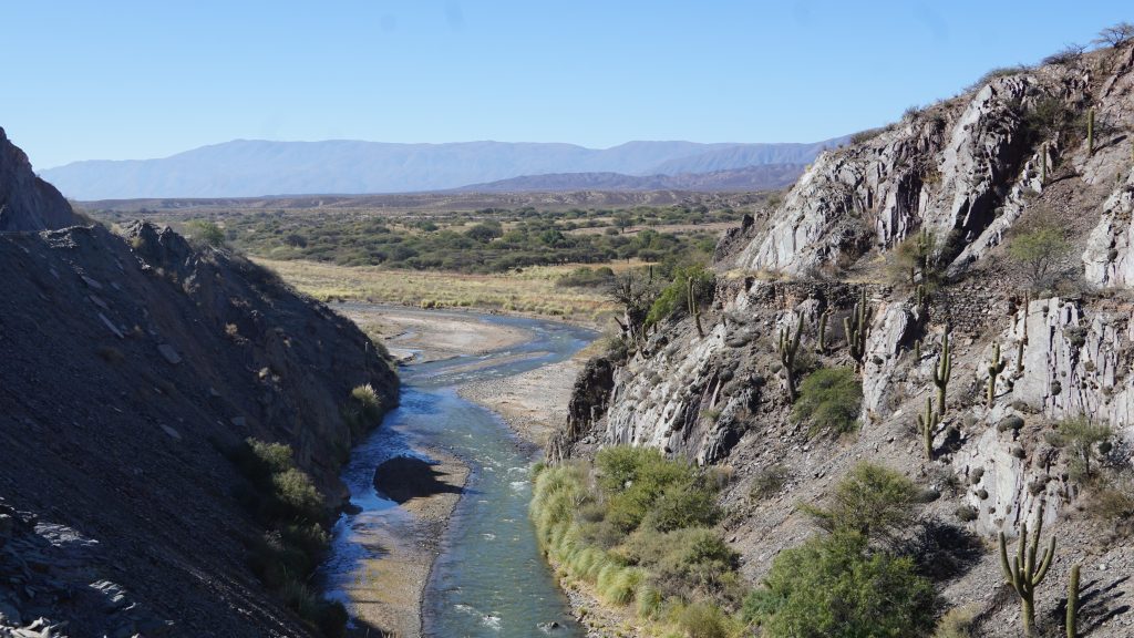 Heute gab es eine Umleitung wegen Bauarbeiten an der Ruta 40. Die Strecke ging immer parallel am Rio Calchaquis entlang. Es ist für uns immer wieder überraschend bei diesem ganzen Staub, dieses doch teilweise sehr klare Wasser dieser Flüsse zu sehen.