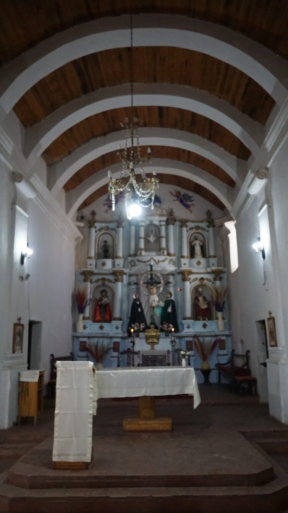 Nachtrag: Wir befinden uns in der Nähe des Nationalparks Cordones (Kandelaberkakteen). Das Dach der Kirche, sowie viel Interior wurden aus dem Holz der Kakteen erstellt. Auch die Straßenschilder bestehen aus diesem Holz
