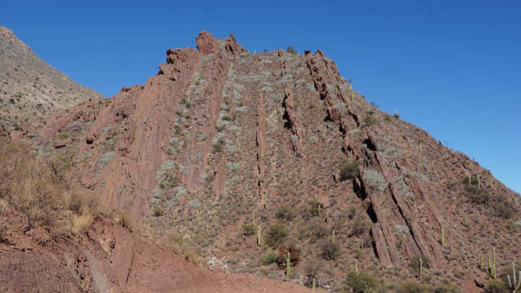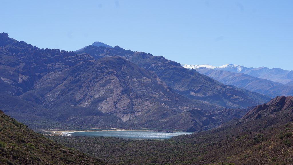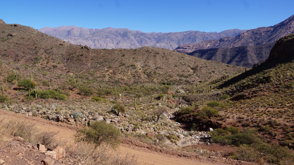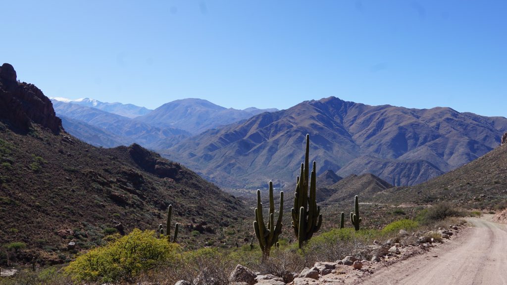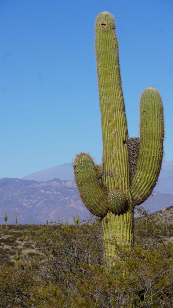 In Seclantas noch kurz etwas zum Abendessen einkaufen, dann ging es los. Die Straße war auf alle Fälle besser als die Ruta 40, hatte es aber auch echt in sich. Aber schon die Blicke! Wir fuhren direkt in die Anden. Es ging von 2000 auf 2700 HM. Die Straße war gesäumt mit Cordones – sogenannten Kandelaberkakteen, die wir eigentlich erst in dem entsprechenden Nationalpark sehen sollten. Kakteen, wie Bäume, bis zu acht Meter hoch und das mitten in den Bergen.