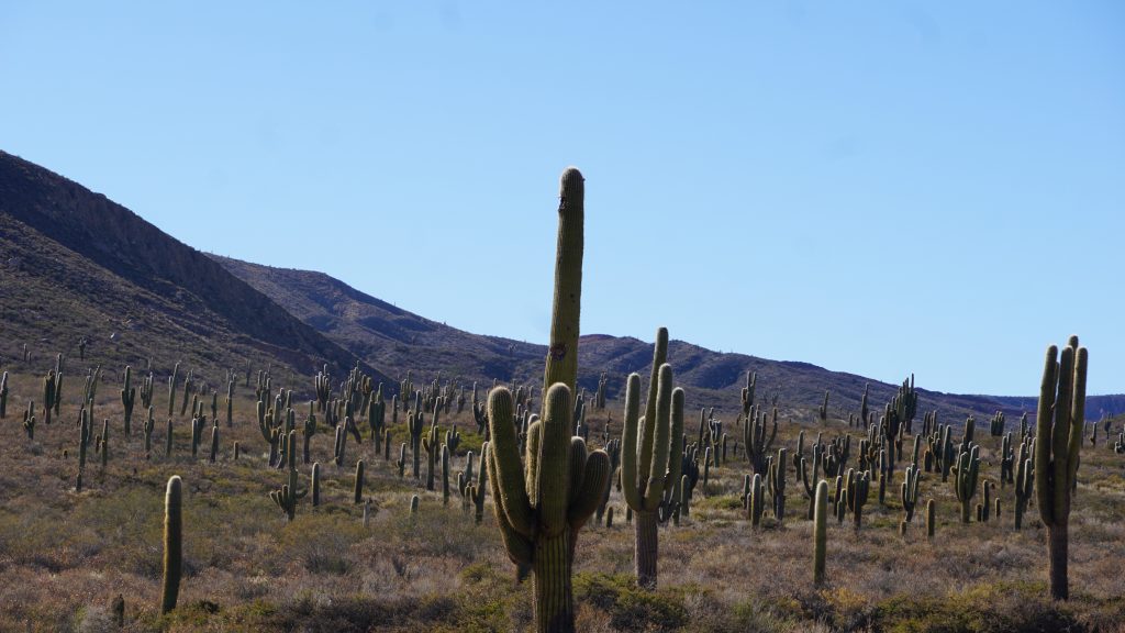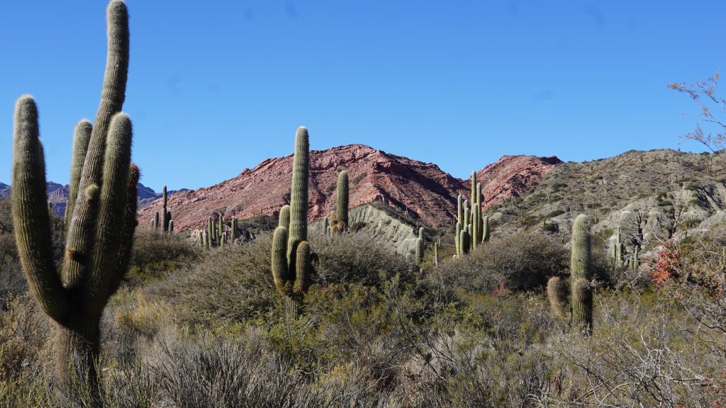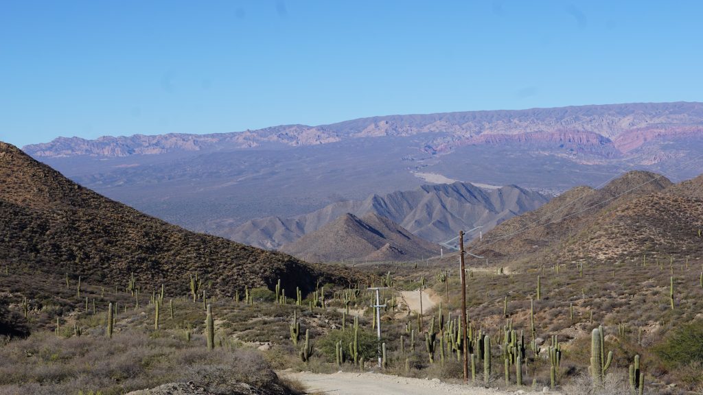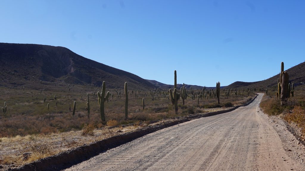 Wir sind relativ früh losgekommen und über die RP42 durch den Nationalpark Los Cardones gefahren. Schon bevor der Park überhaupt begann, fuhren wir durch einen Kandelaberkakteenwald. Natürlich nicht so dicht, wie die Wälder in Europa sind, aber wie man das halt auch wirklich in den Comics sieht.