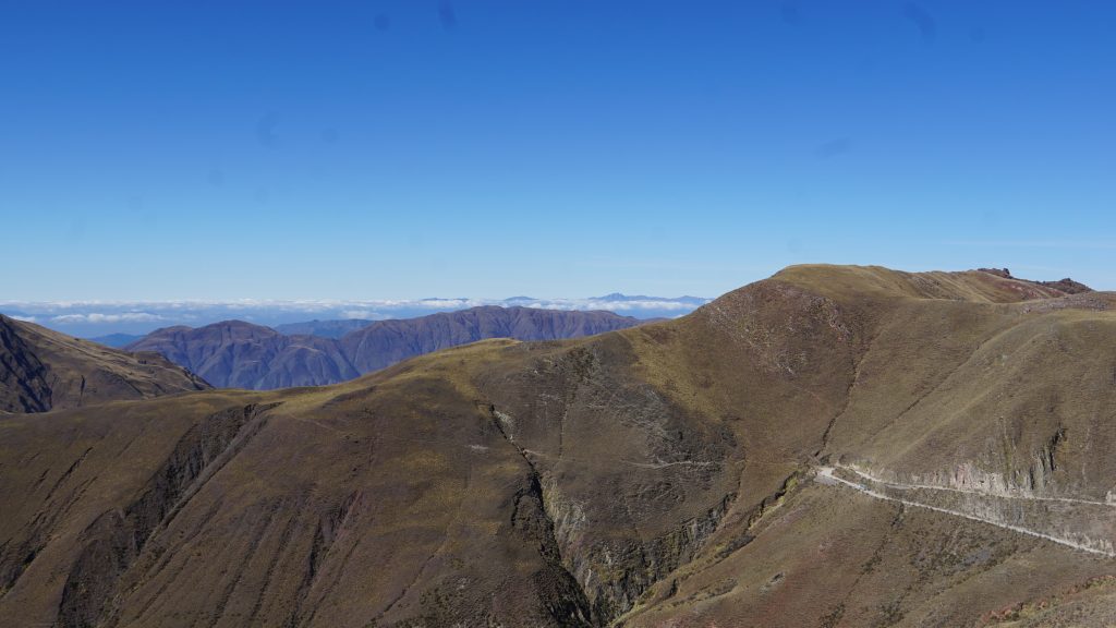 Die Straße schlängelte sich fast unbemerkt (wir haben auf 2100Hm geschlafen) auf 3400Hm zum Piedra del Molino hinauf. Natürlich gab es dort einen Aussichtspunkt. Dort blieb uns ein zweites mal die Luft weg. Nicht nur wegen der Höhe, sondern hauptsächlich wegen des Blickes. Atemberaubend klingt dort fast schon abgedroschen. Aber es hat mich zum zweiten mal weg gehauen. Ich kann noch nicht einmal schreiben: „wie cool ist das denn“, das passt da nicht so richtig. Der Blick ging nach vorne und nach unten. Dort sah man die Straße, die sich durch die Cuesta del Obispo schlängelte. Ich weis nicht, ob das die Fotos wieder geben können, ich kann es nicht beschreiben.