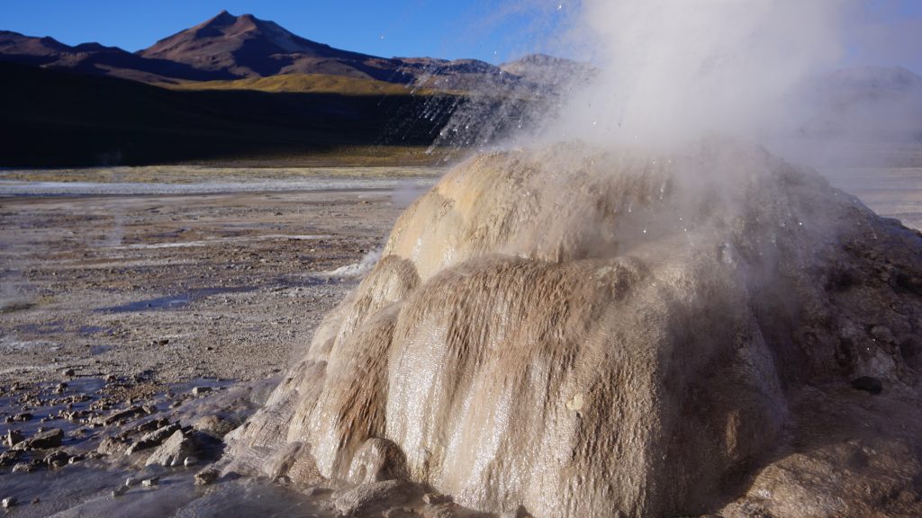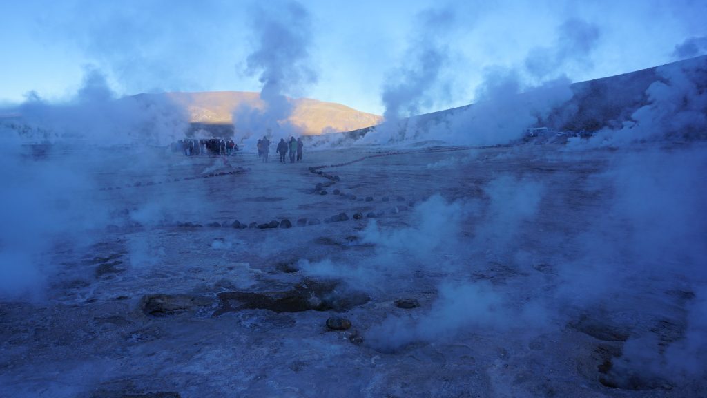 Was für ein Erlebnis, an allen Stellen dampfte und fauchte es und immer wieder stiegen Fontänen auf. Dazu kam dann noch die aufgehende Sonne. Die Fläche und die Möglichkeiten zum Staunen war so groß und vielfältig, dass für jeden Platz war.