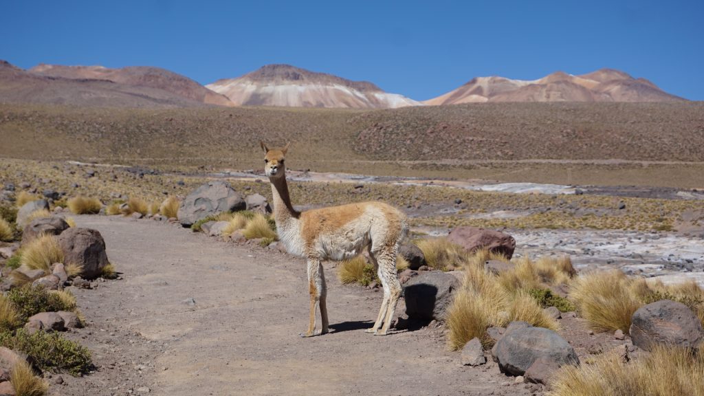 Gegen 09:00 hatten wir das Gelände dann fast für uns allein. Die Busse waren wieder weg, da ja das eigentliche Spektakel vorbei war. Für uns nicht. Es trat eine plötzliche Ruhe ein. Auch unsere Freunde, die Vicunias, traten wieder auf die Bildfläche. Na gut, die Fontänen und Dampfschwaden waren weg, aber jetzt konnte man in die Becken schauen und die Farben bewundern.