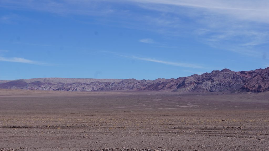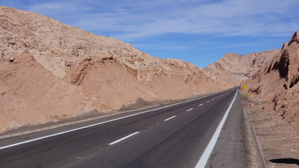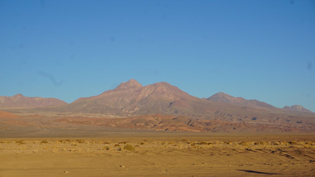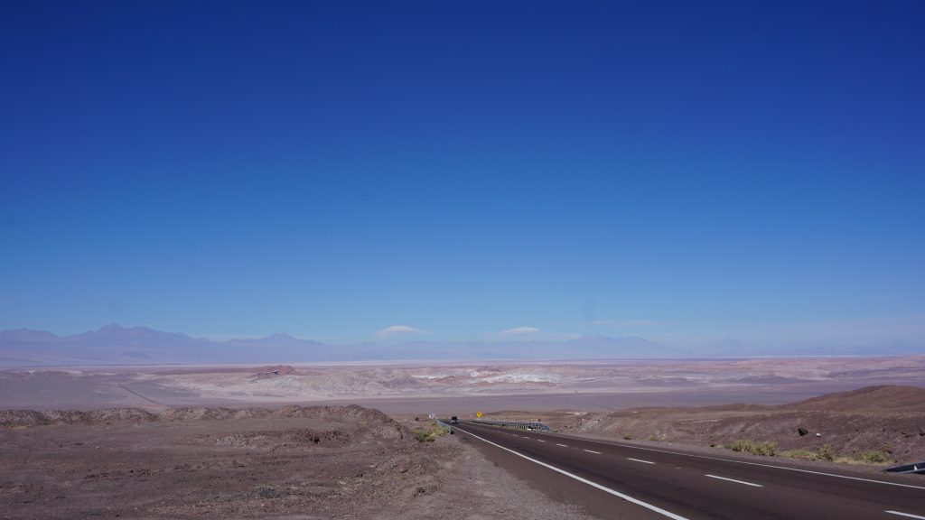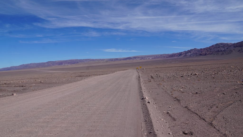 Aber auch die Strecke bis zur Lagune (abgesehen von deren Zustand) war beeindruckend. Wir fahren direkt durch die Wüste. Rechts und links, in doch weiterer Ferne, ein paar Berge, die je nach dem Stand der Sonne ihre Farbe wechselten. Doch es war nicht so einfach, die Landschaftsbilder in sich aufzunehmen. Die Straße erforderte mal wieder extreme Konzentration.