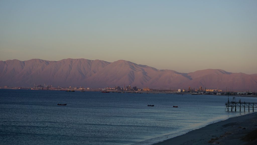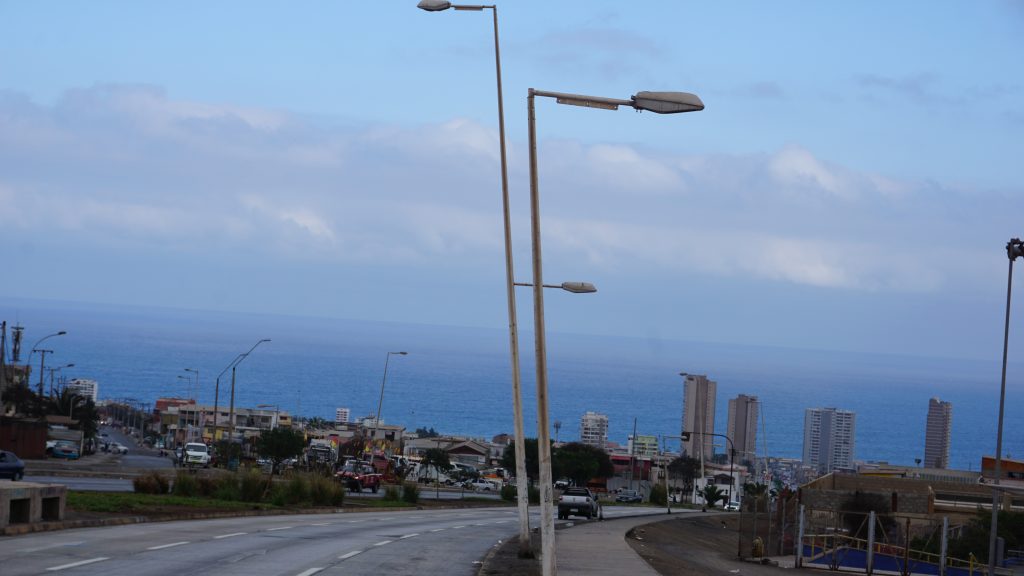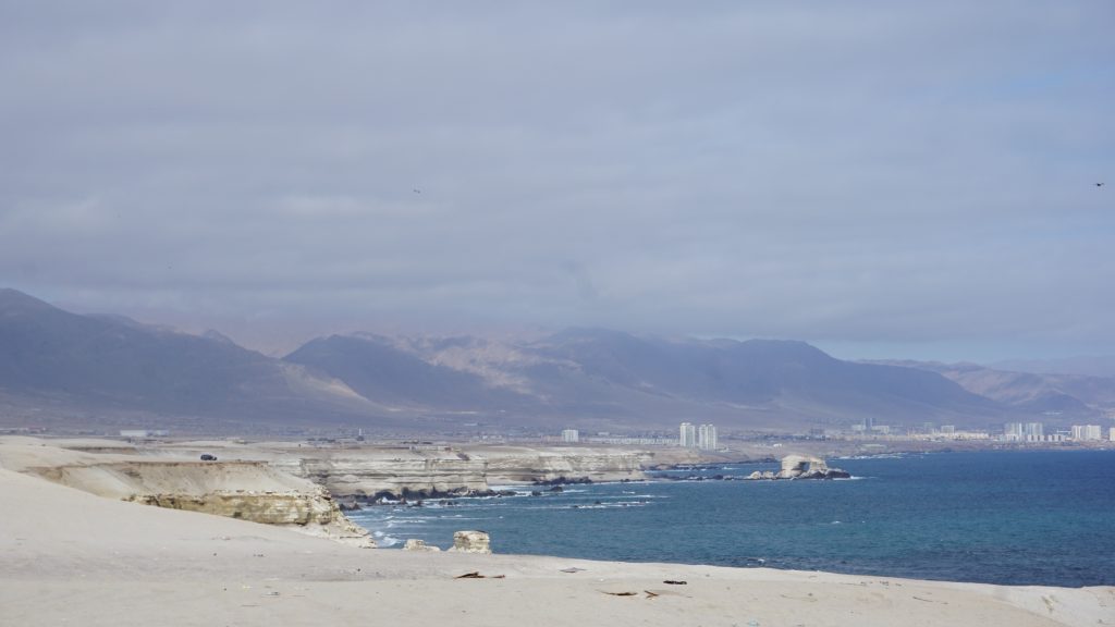 Und es ging weiter durch die Wüste, bis Antofagasta. Dieses mal aber Wüste, in welcher man nicht ausgesetzt werden möchte. Industrie (Kupfer-Minen) und Sand wohin man schaut. Also hieß das Motto: einfach nur durch. In der Hoffnung, dass es ab Antofagasta Meer und Farbe gibt. Die Hoffnung war vergebens. Wie am Pazifik typisch, liegt dieser halt im Dunst und die Stadt ebenfalls.