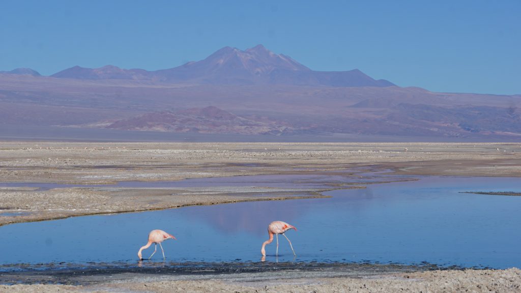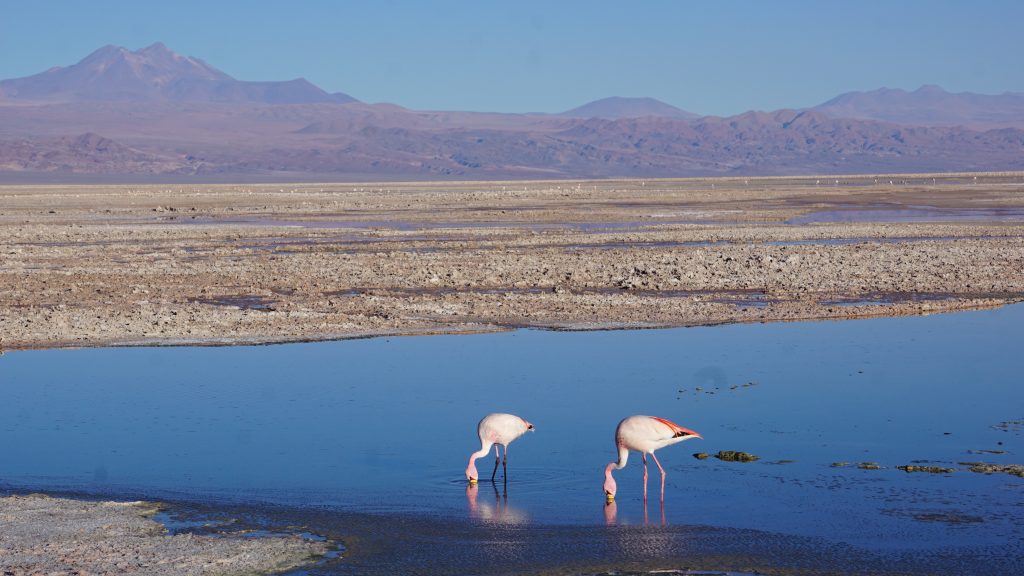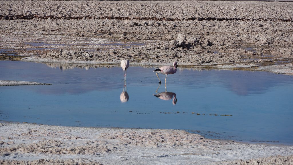 Wir wollten heute zur Laguna Chaxa, die mitten in der Salar de Atacama liegt. Flamingos hautnah erleben, hieß es im Reiseführer. Es tummelten sich wirklich viele Flamingos in den Lagunen. Mit dem Teleobjektiv kann man dann auch hautnah sagen.