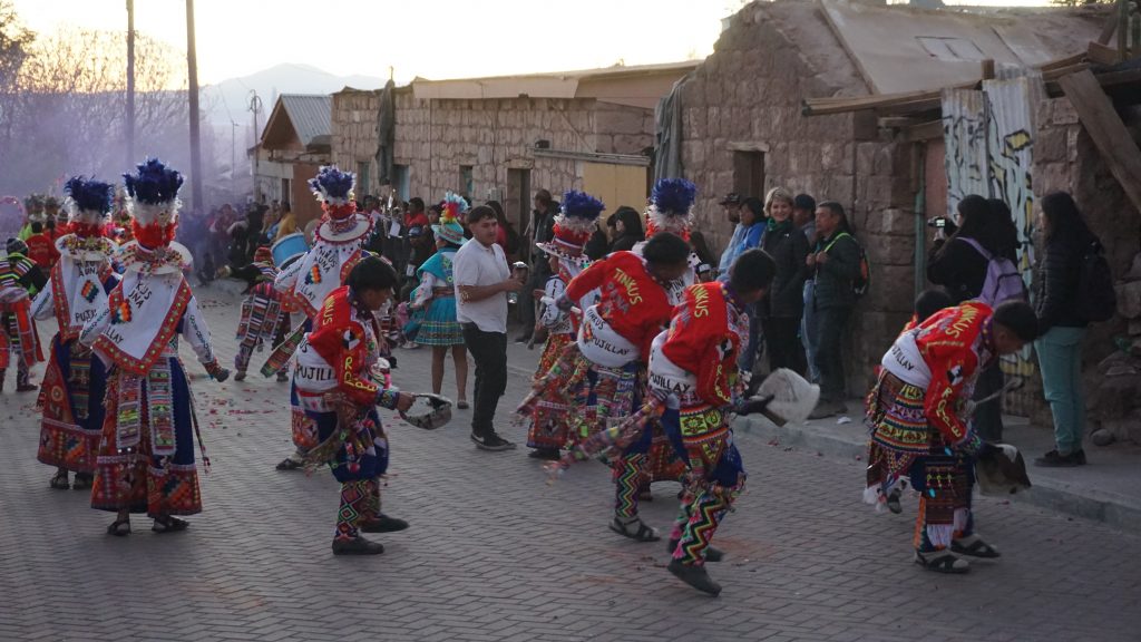 Zum Abend hin ging es noch zur Quebrada de Jerez, an der wir auch übernachten wollten. Das ging leider nicht, aber in Toconao gibt es eine Plaza, die für die Nacht dann auch reichen sollte. Hier konnten wir noch dem Tanz und Umzug der Einheimischen zuschauen. Allerdings blieb uns der Grund des Festes unbekannt.