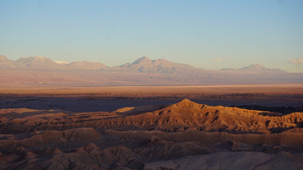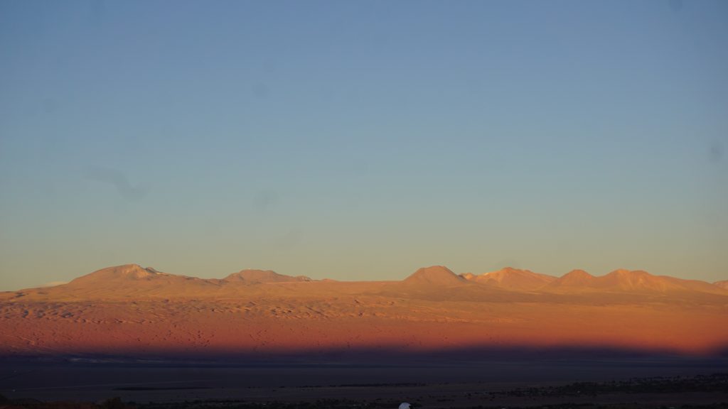 Nicht nur die Aussichtsplattform, das ganze Valle de la Luna war die reinste Touristeninvasion. Wir haben es über uns ergehen lassen und sind dann wieder an unseren Platz oberhalb der Stadt gefahren. Die Sonne war dann zwar weg, aber die Berge lagen noch in einem wunderschönen mystischen Schimmer.