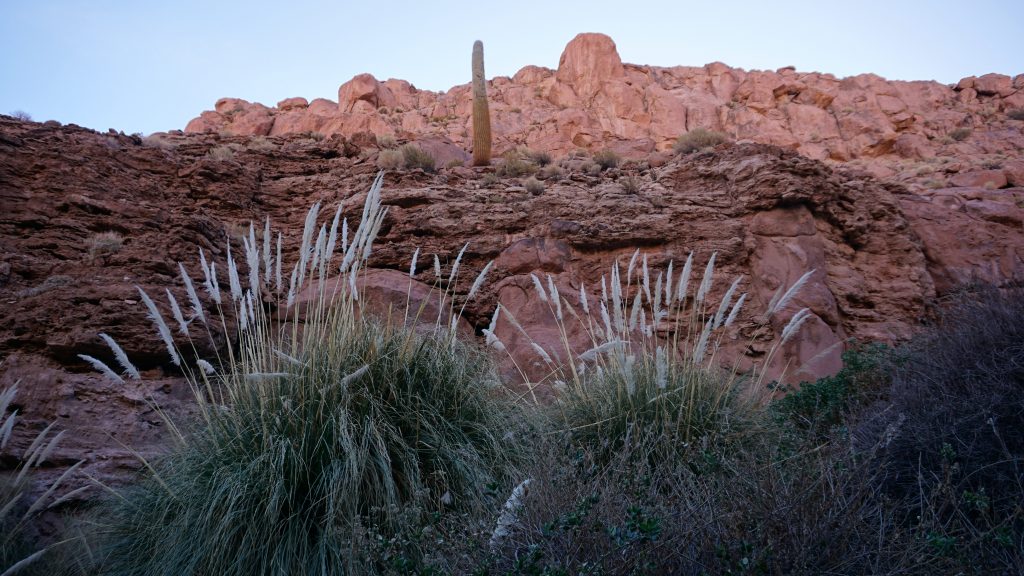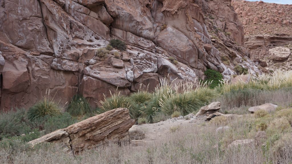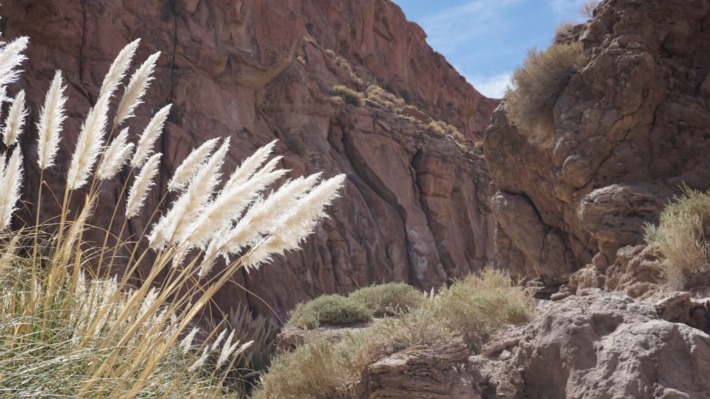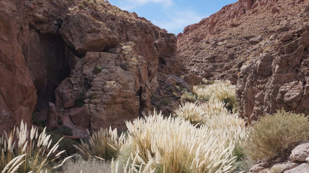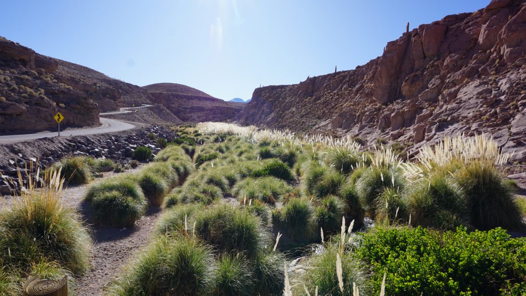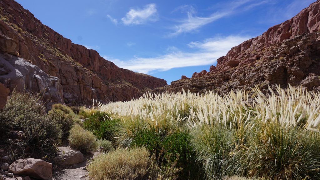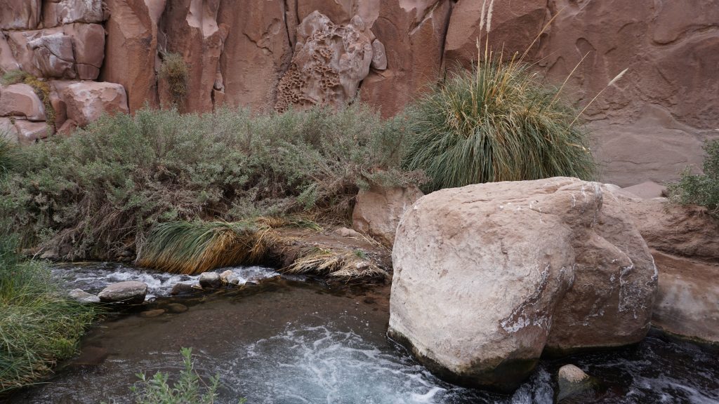 ich hatte bloß schon einmal nach einem Übernachtungsplatz (iOverlander) für heute geschaut und dann sah ich das: „Better than Termas de Puritama“. Was für ein magischer Ort! Eine Oase in der Quebrada Escalera. 10m unter uns war alles grün, Riesen-Pampasgras wuchs und wir hörten Wasser plätschern. Wie cool ist das denn?! Wir standen an unserem Camper und wussten, dass der Tag heute gelaufen ist. Endlich Wasser nach gefühlter Ewigkeit in der Wüste.