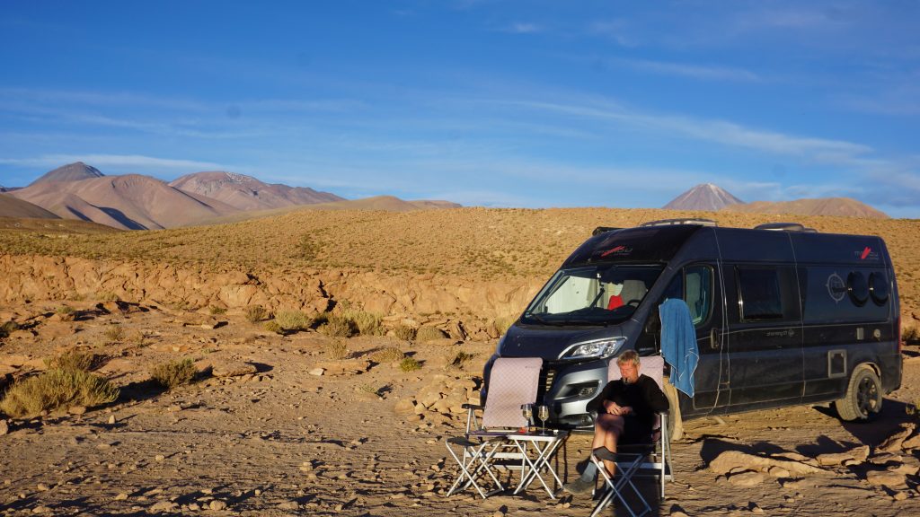 Wir hatten uns auf dem Weg zur Lagune schon ein Plätzchen für die Nacht ausgesucht. 10Km Fahrt waren dafür notwendig. Das reichte auch, denn es wurde schon leicht dunkel. Nun stehen wir hier mitten in der Atakama-Wüste, wieder einmal nichts als Sternenhimmel und Stille um uns herum.