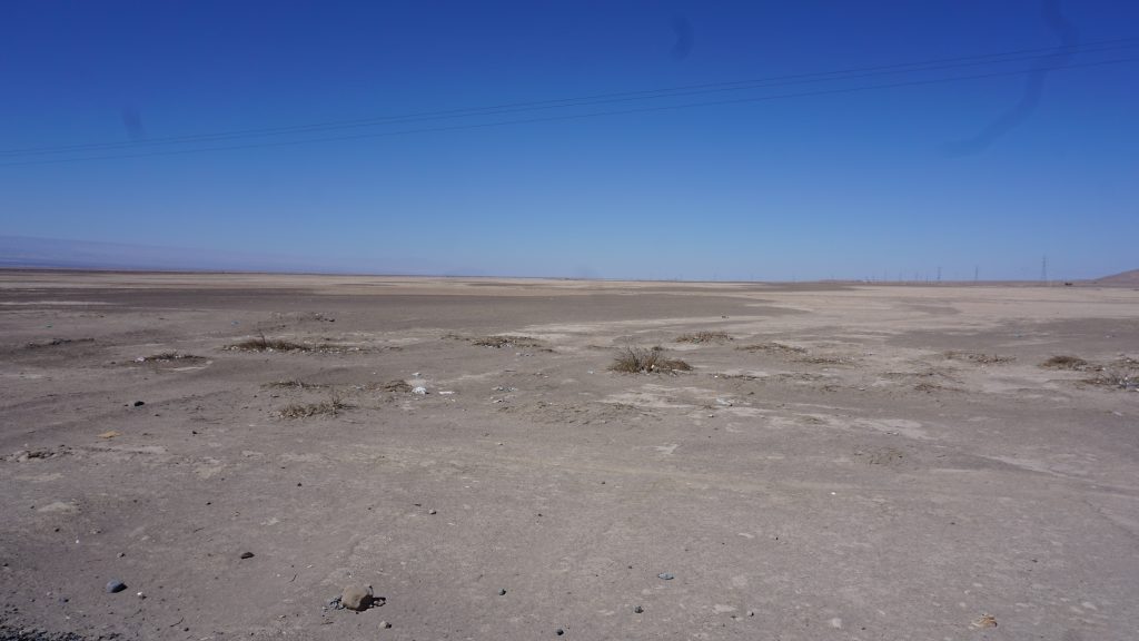 18:00 heißt aber auch: es wird gleich dunkel und Zeit für einen Stellplatz. Theres wollte nicht direkt in der Wüste stehen. Ja, wir sind wirklich wieder in der Wüste. Trocken und vegetationslos, auf einer Höhe von 1000m einfach nur flach.