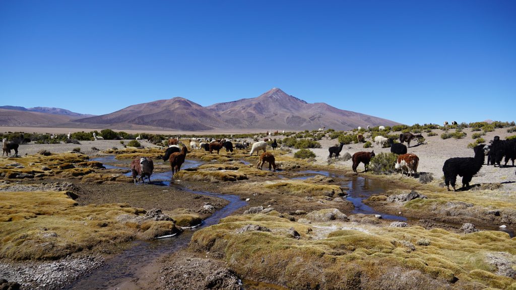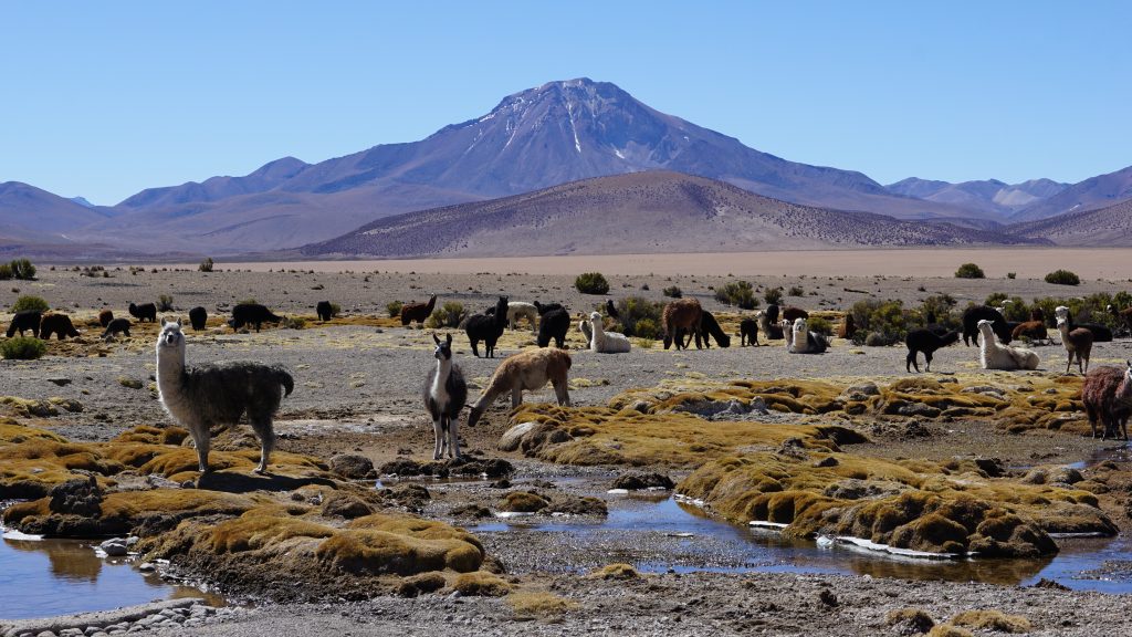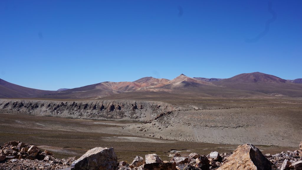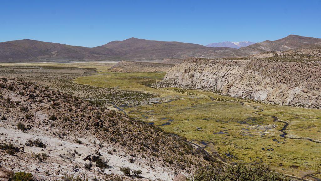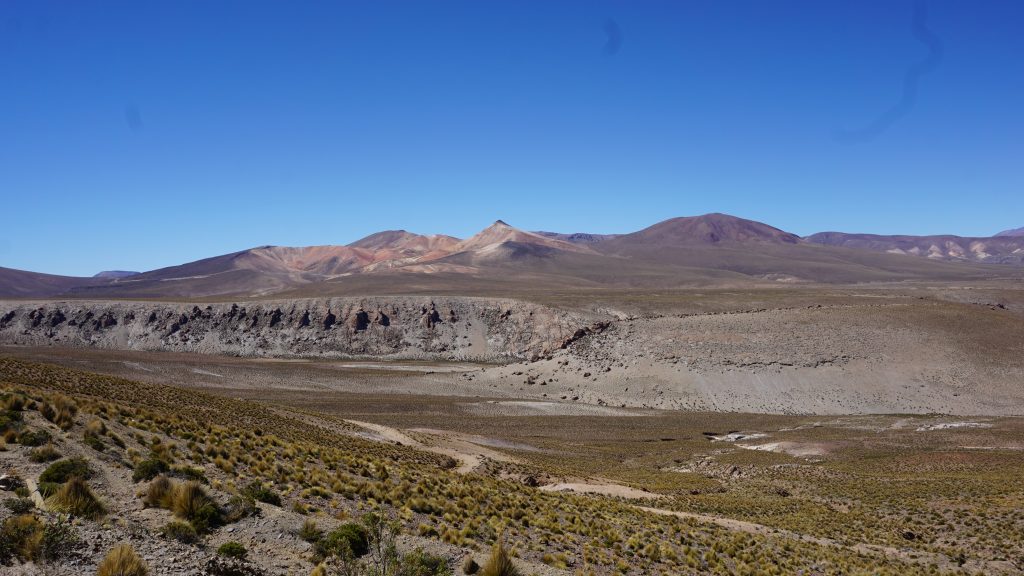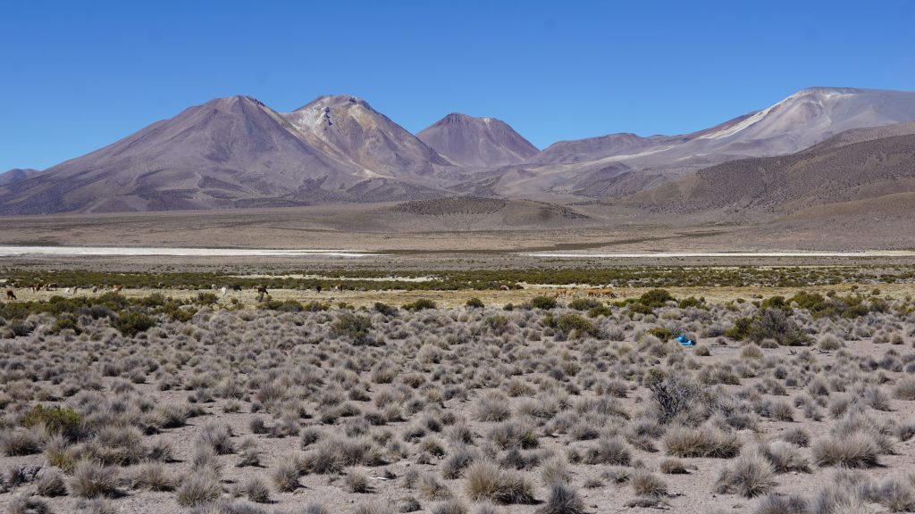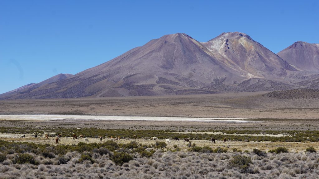 Am wolkenlosen Himmel konnten wir Dampf aus dem Vulkan Isluga aufsteigen sehen.