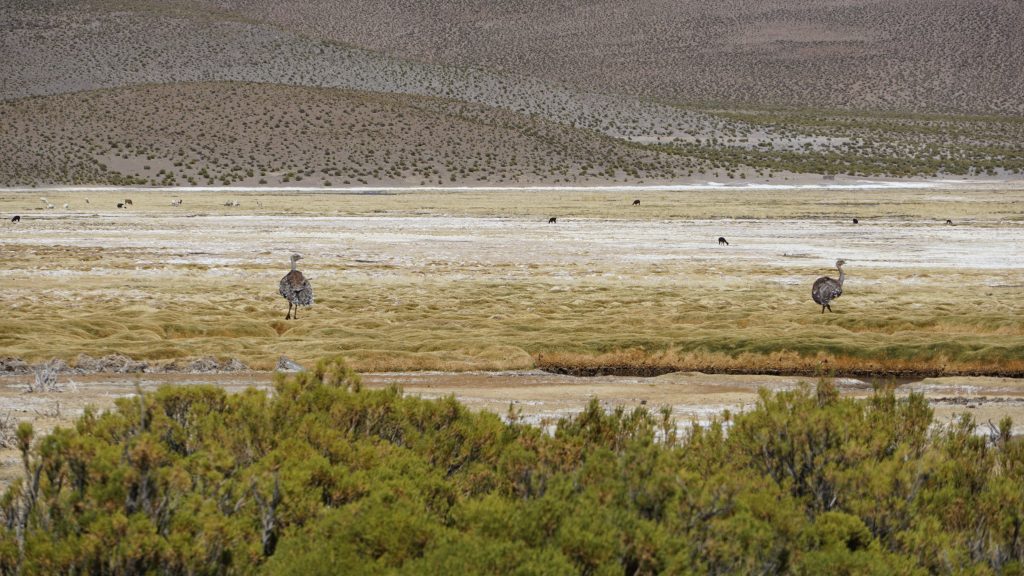 Landschaftlich natürlich wieder wüstenhaft schön. Es ging an einer Quebrada mit viel Grün entlang. Auf dem Wasser war teilweise noch Eis. Und es ist eine sehr einsame Gegend. Die wenigen Orte machen einen ziemlich verlassen Eindruck. Wir sahen wieder viele Lamas, ein paar Nandus und Vicunias.