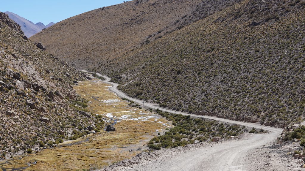 Die Strecke nach Cochane (Pass) erinnerte mich sehr an den Pass Richtung Purmamarca, von der Salina Grande kommend. Tiefe Täler, immer wieder wechselnde Farben und die Höhe passt auch. Nur die Nummernschilder der LKW`s haben sich geändert, es sind fast ausschließlich Bolivianer. Das liegt natürlich auch nahe, der Pass führt nach Bolivien.