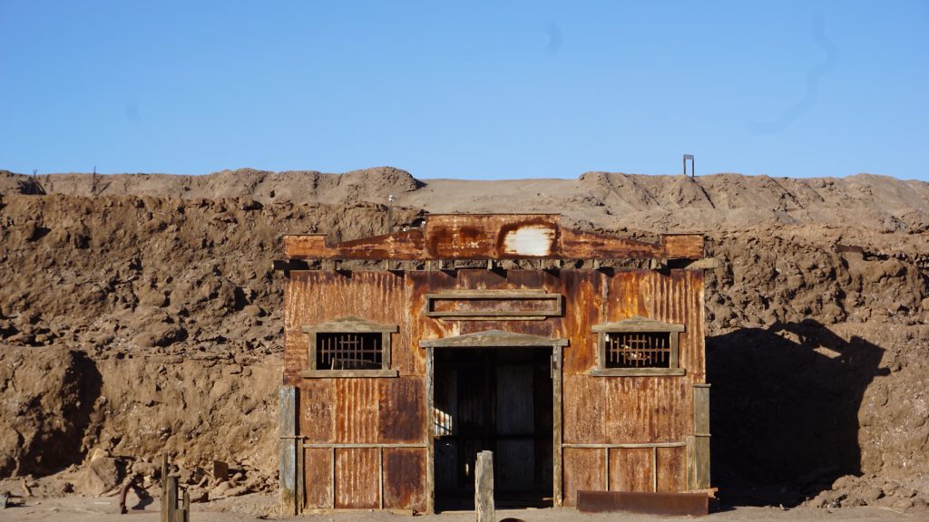 Dann ging es endlich los. Ein Zwischenstopp auf der Strecke war noch die Geisterstadt Humberstone. Dieser Ort entstand zu den Zeiten, als hier Salpeter abgebaut und in die ganze Welt verschifft wurde. In den 1930 Jahren begann dann der Verfall, bis zur Aufgabe. Da es schon 16:00 war und wir von Orten eigentlich erst einmal genug haben, wollten wir nur mal schauen. Die zwei Stunden waren gerade ausreichend genug. Wieder einmal eine Westernstadt wie in unseren Vorstellungen und in alten Westernfilmen dargestellt. Der Wind fegt um die Ecken, Staub wird aufgewirbelt und irgendwo quietscht immer etwas im Wind, wie kurz vor einem Waffenduell. Auch wenn wir Anfangs unsere Zweifel hatten, wir hätten noch mehr Zeit hier verbringen können.