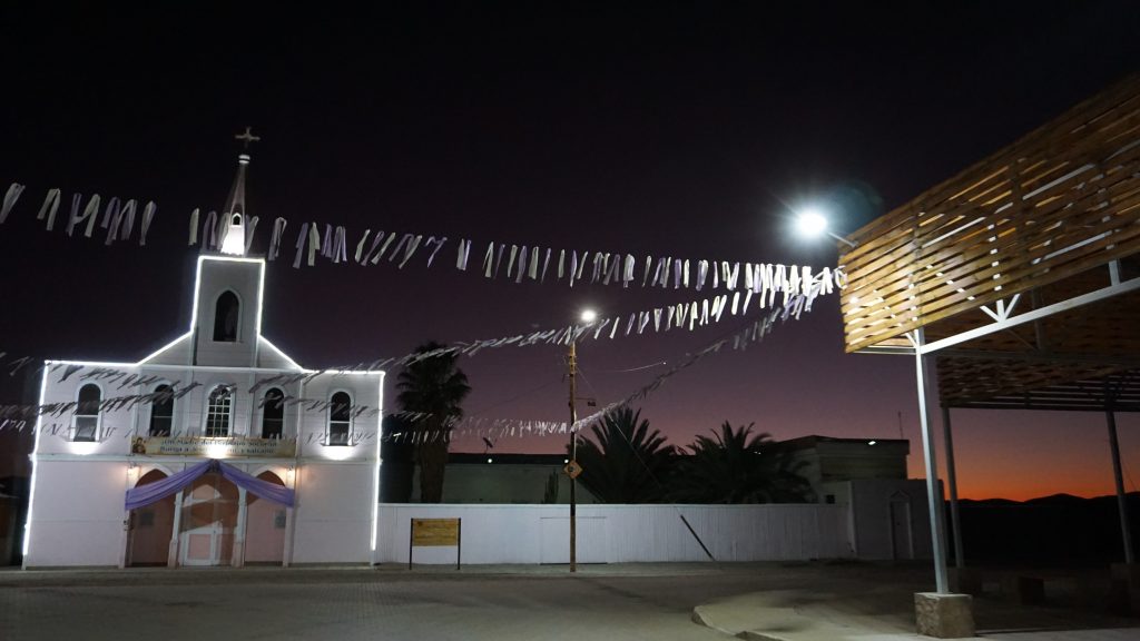 Ungewöhnlich für uns war die Ruhe in Huara. Neben uns an der Plaza war ein Fitnesscenter. Wie in Südamerika üblich, lag es nahe, das es lange in die Nacht hinein gehen könnte. Um 22:00 war dort plötzlich Schluss und absolute Ruhe in dem Ort.